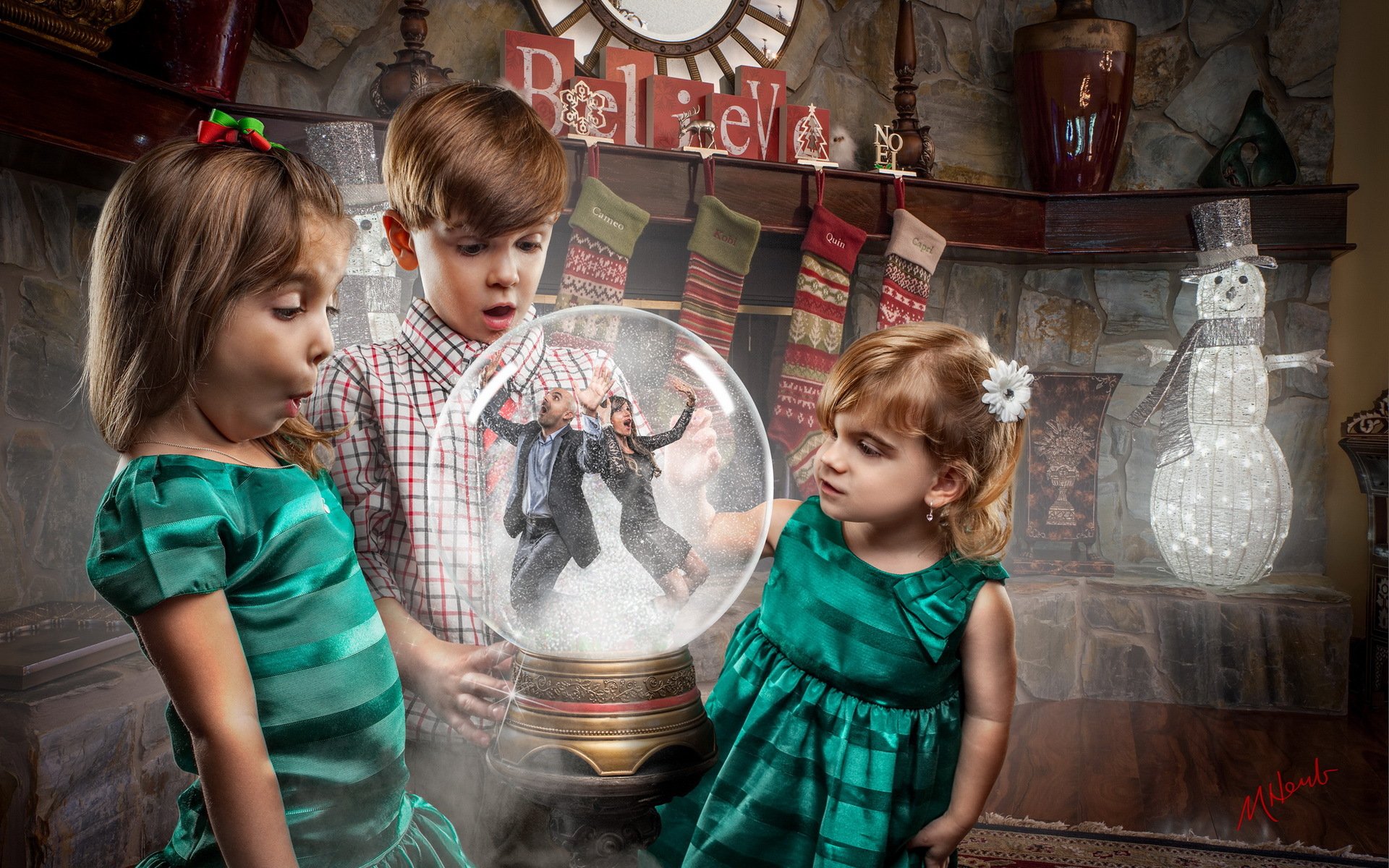 Children look at their parents trapped in a glass ball