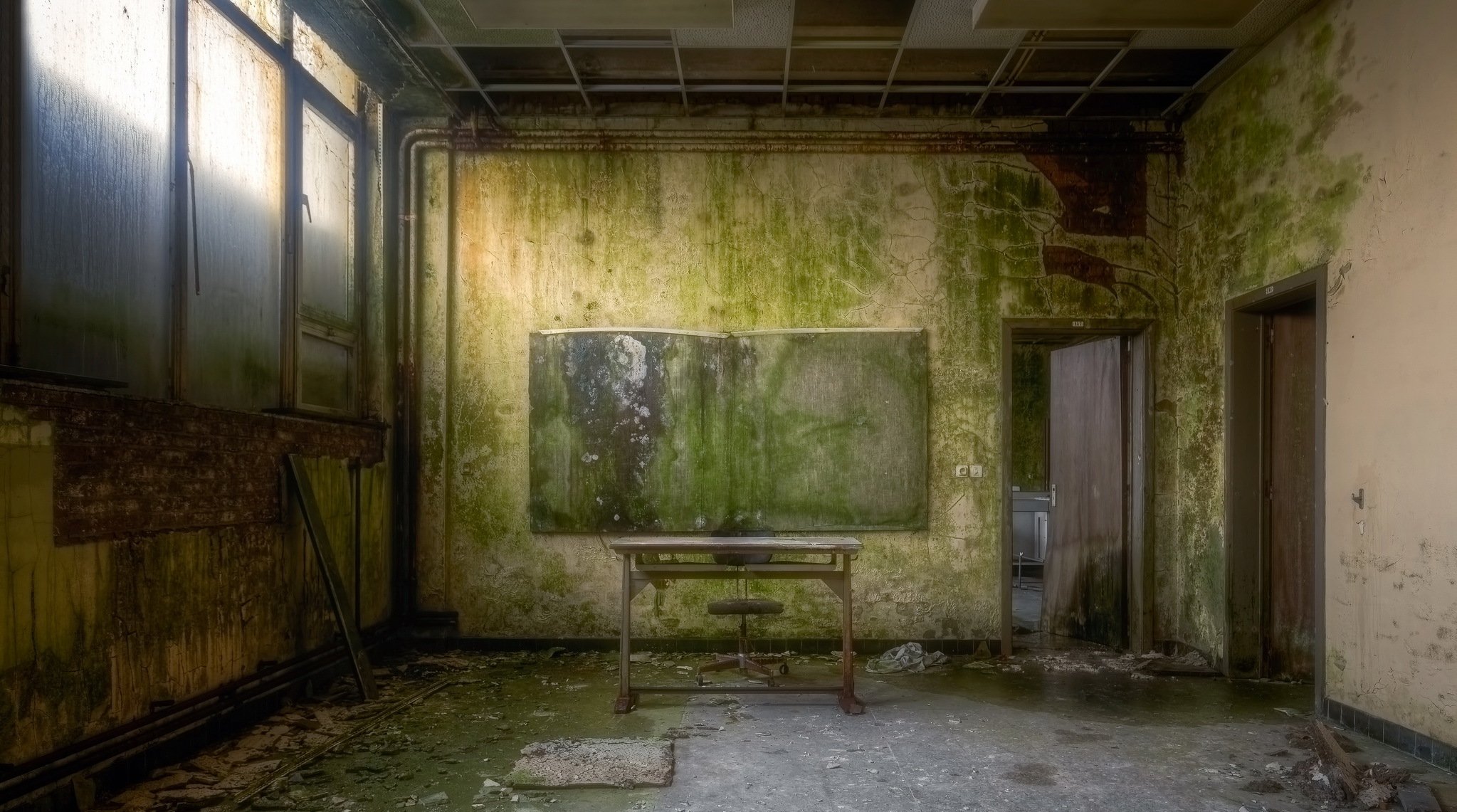 A classroom in an abandoned school
