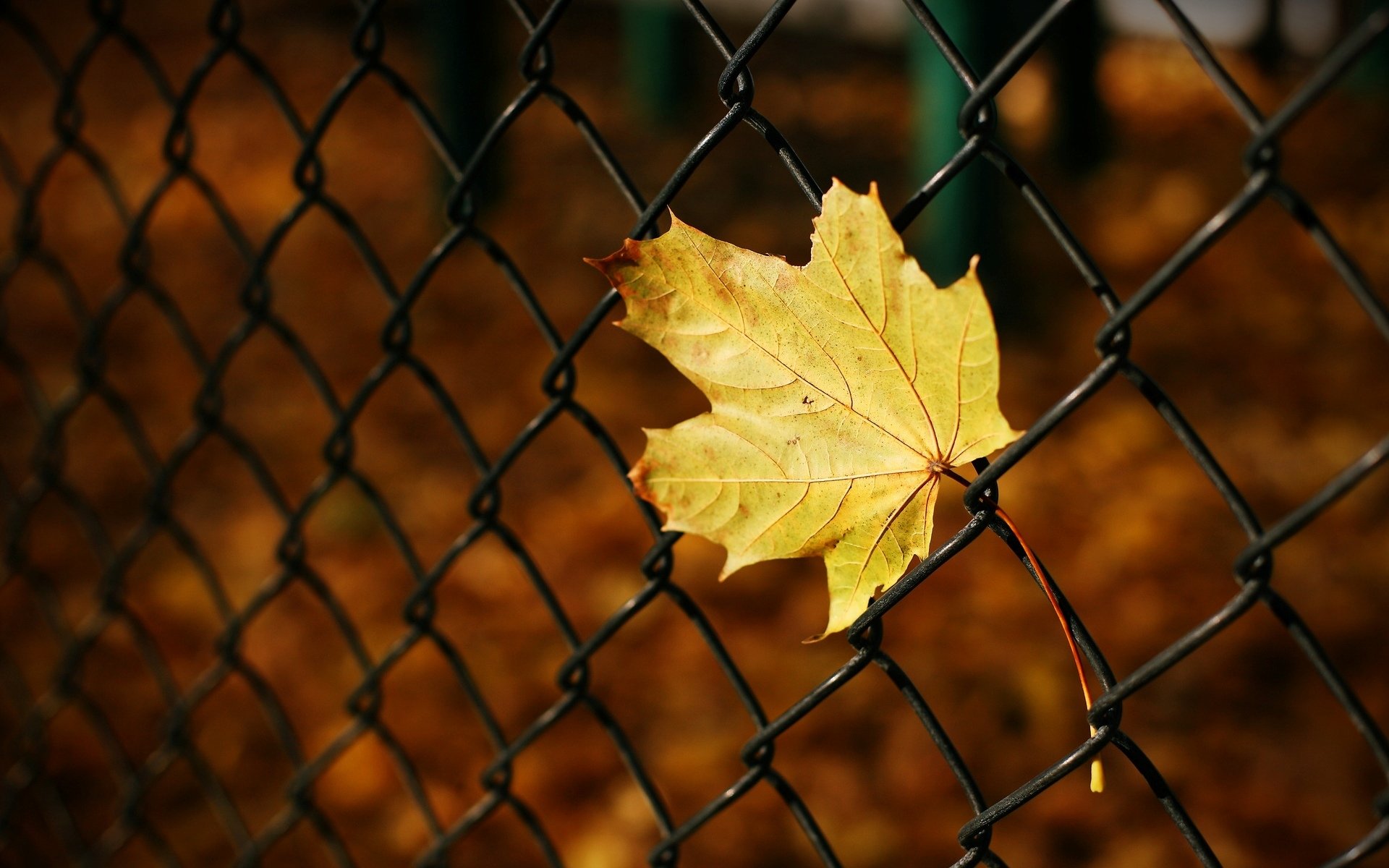 Image tags:close up, leaf, yellow, net, fencing, autumn, macro, background, blur, wallpaper, widescreen, full screen, hd wallpapers