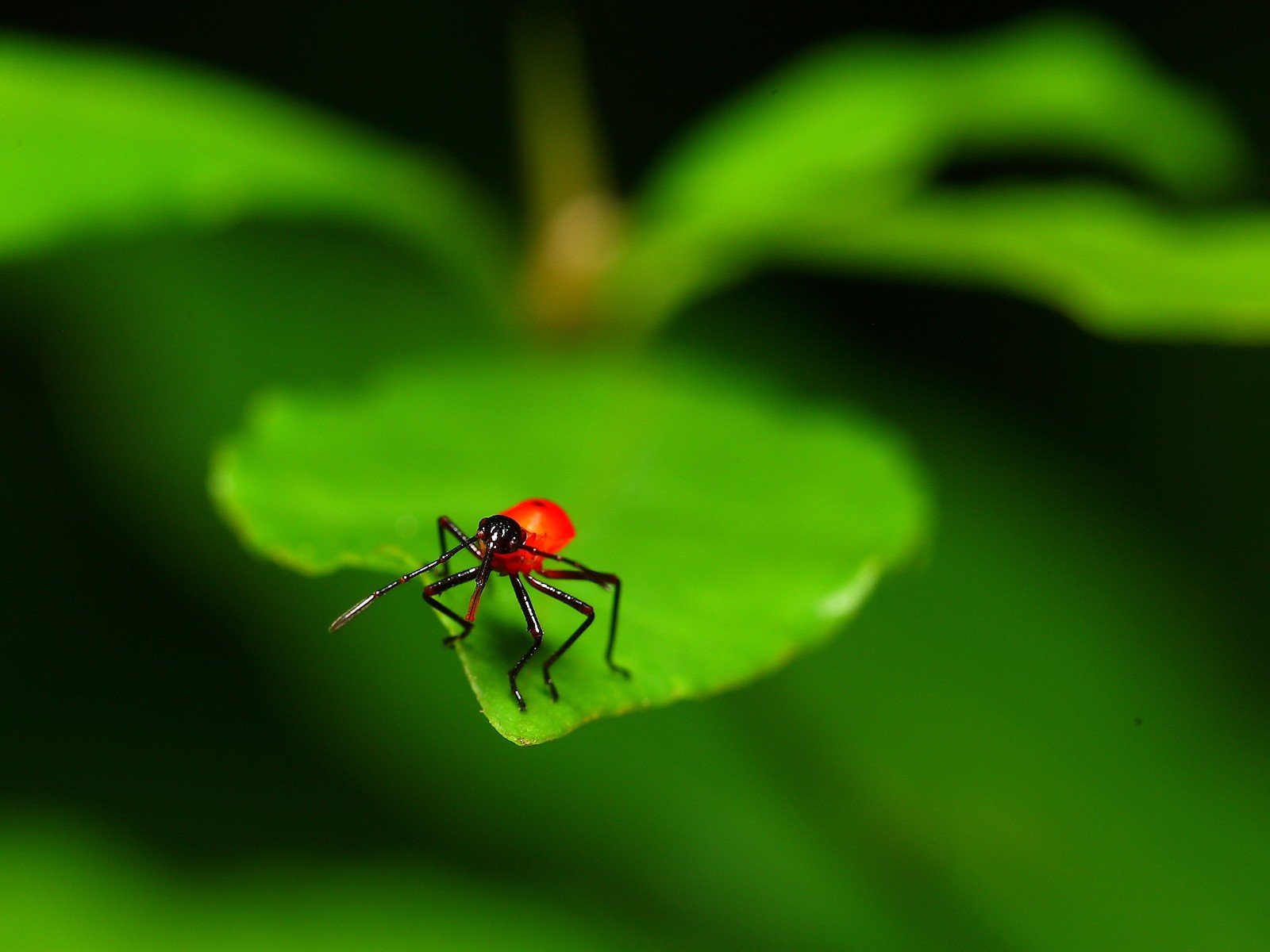 A bug with a red body on a leaf