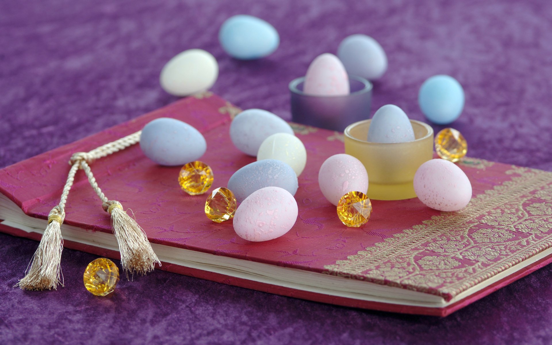Colored Easter eggs on a notepad