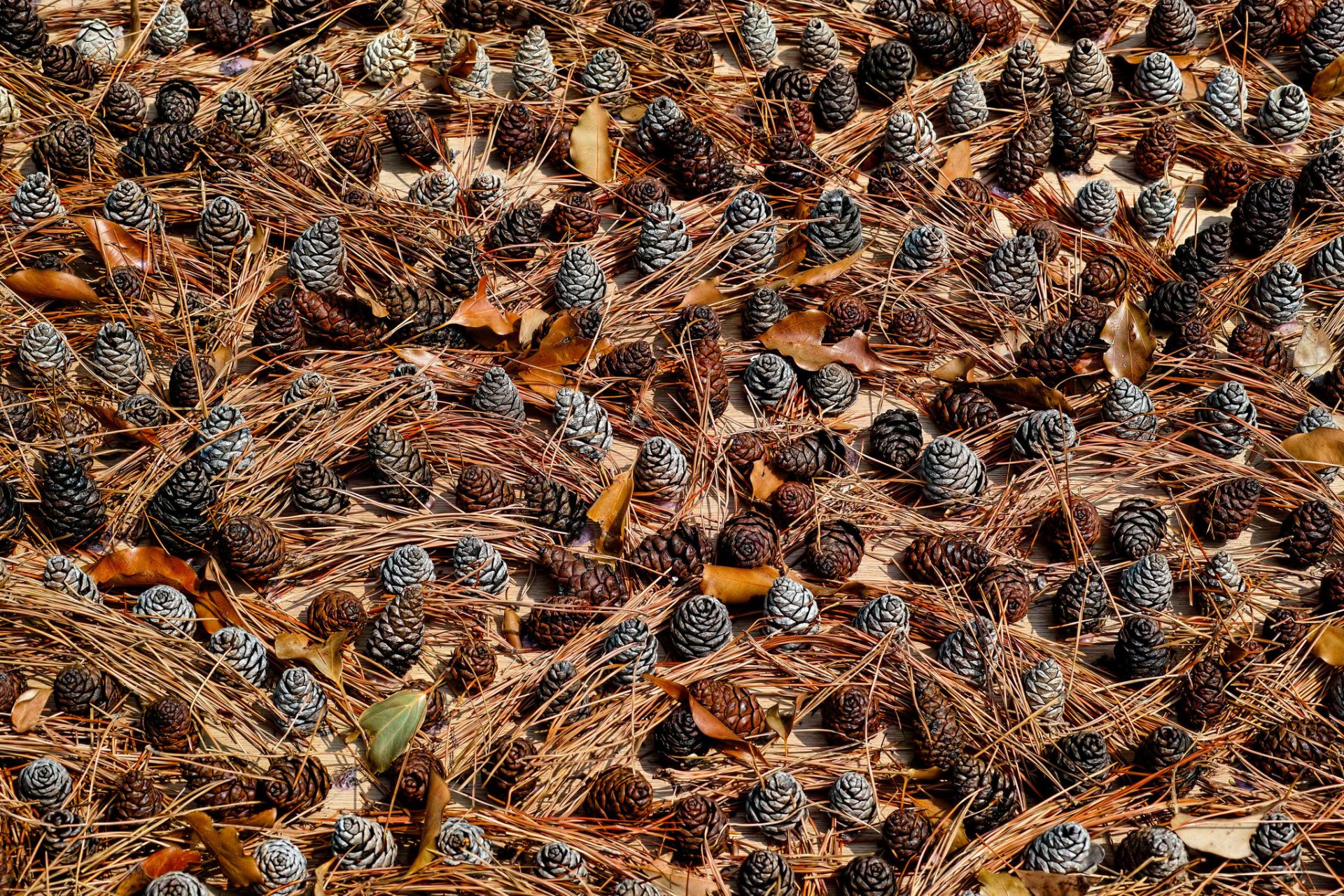 Soil in a coniferous forest with cones and pine needles