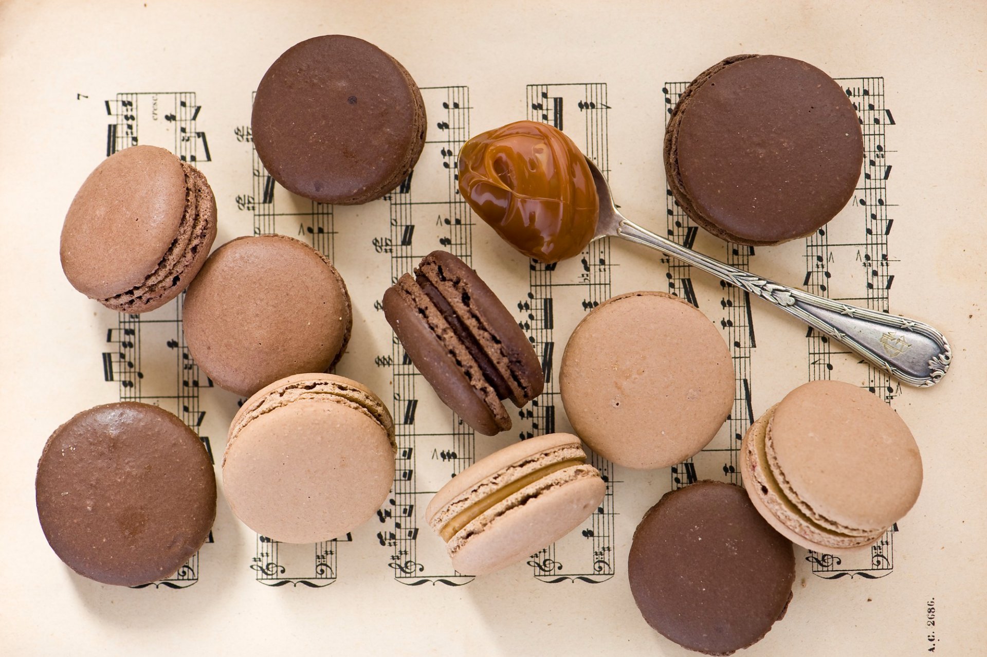 Dessert macaroon with condensed milk in a spoon