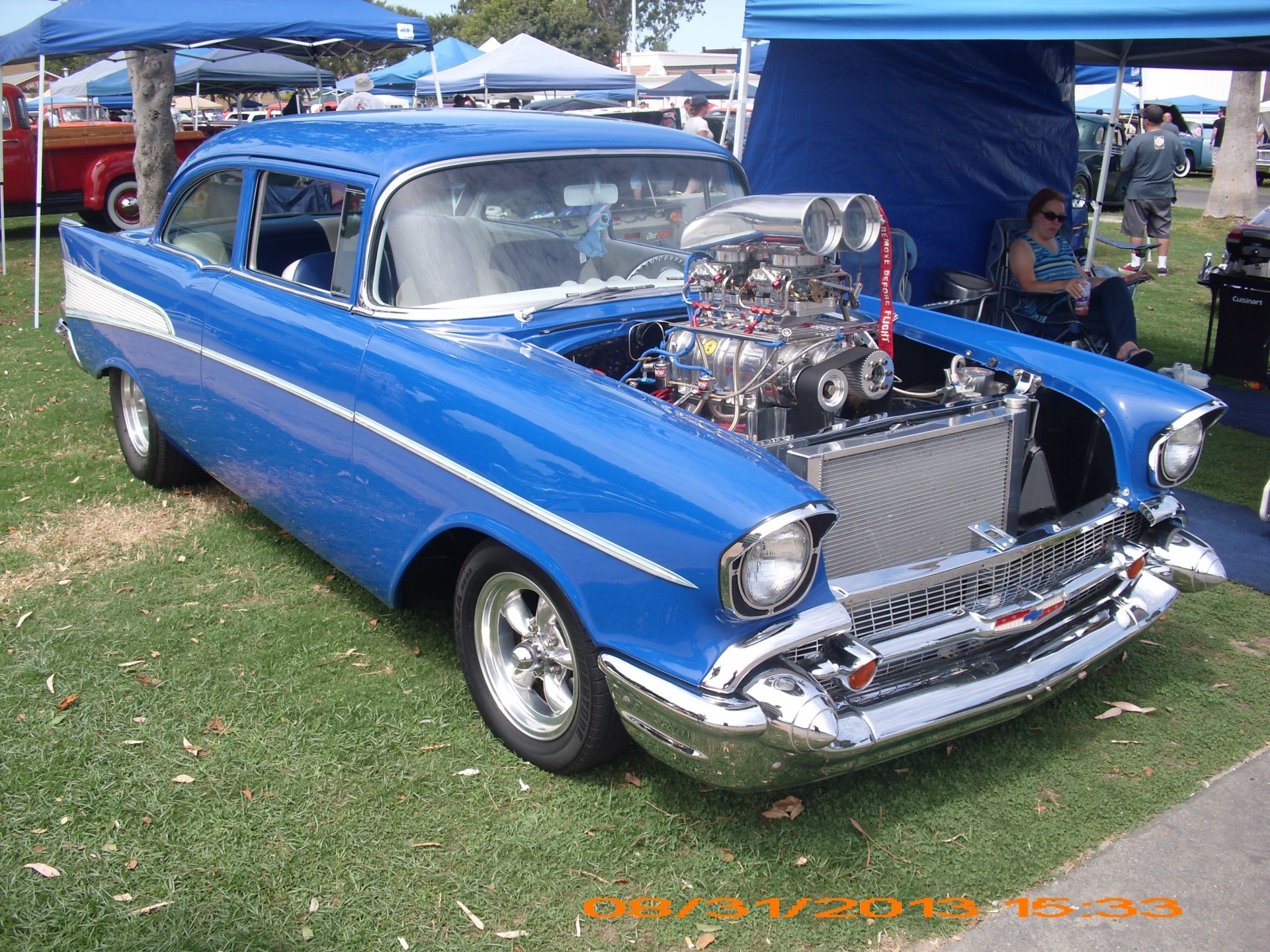 Unusual blue corvette with installation under the hood