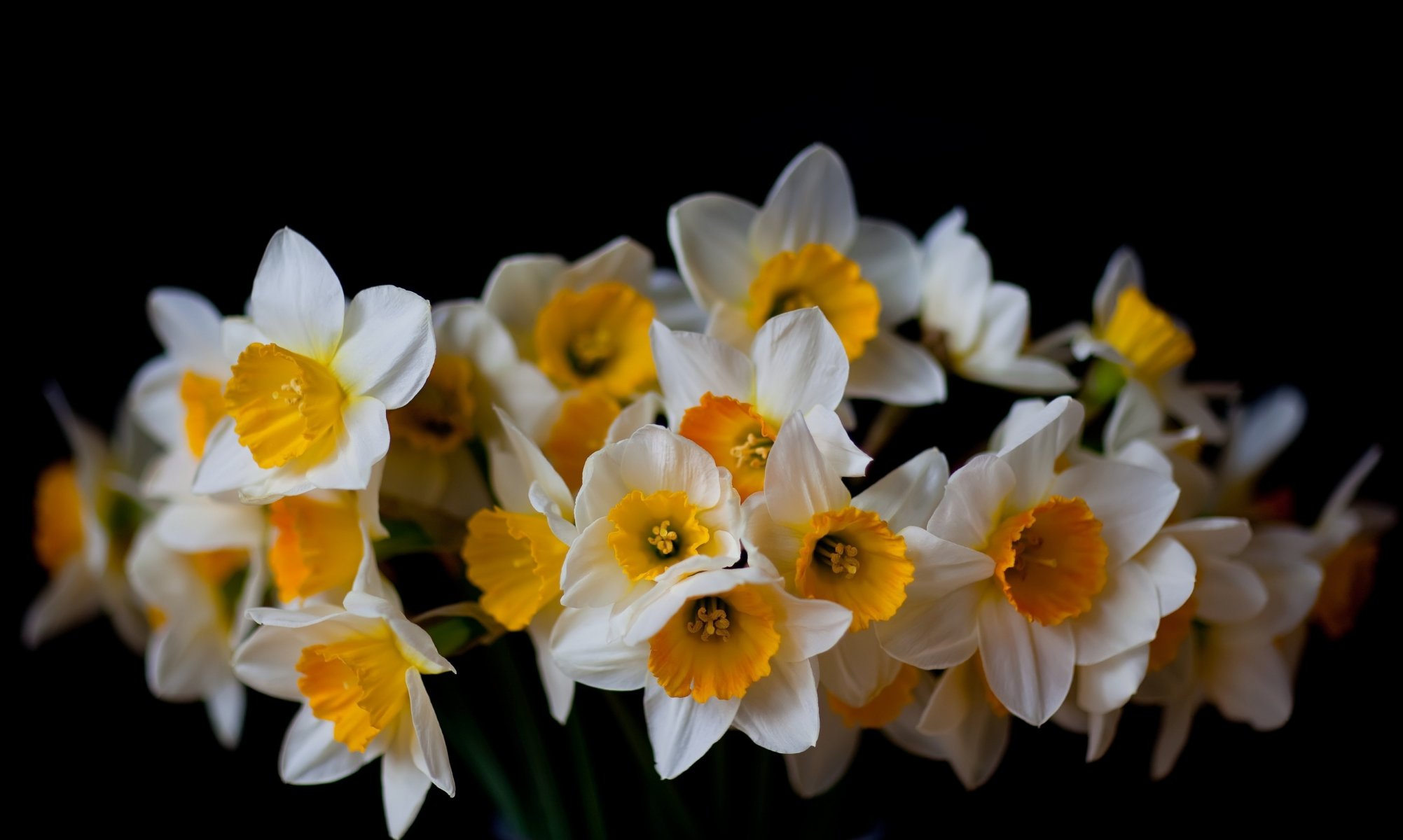 Beautiful daffodils on a black background