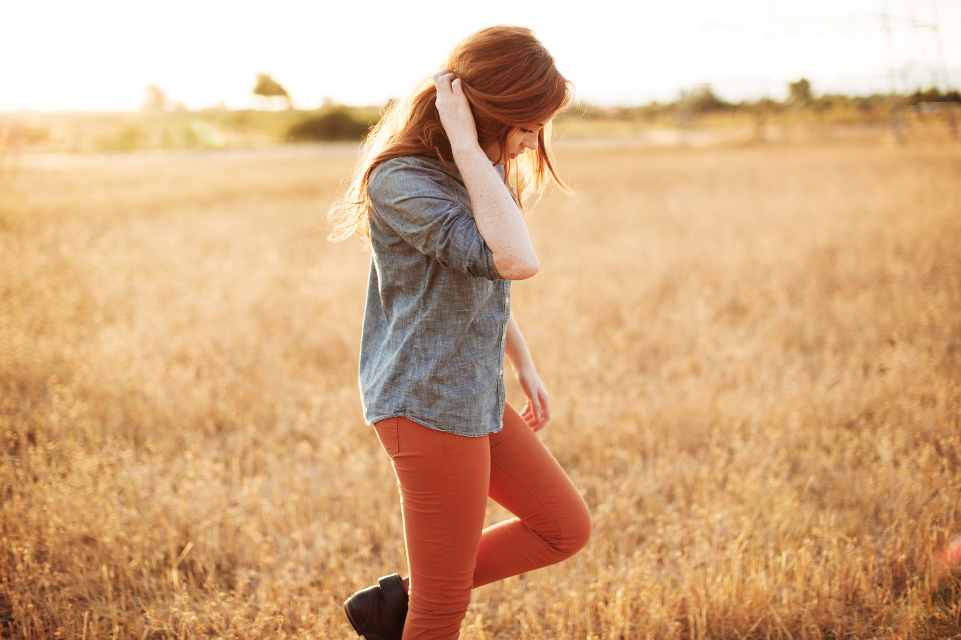 Image tags:danielle, girl, red hair, nature, the field, grass