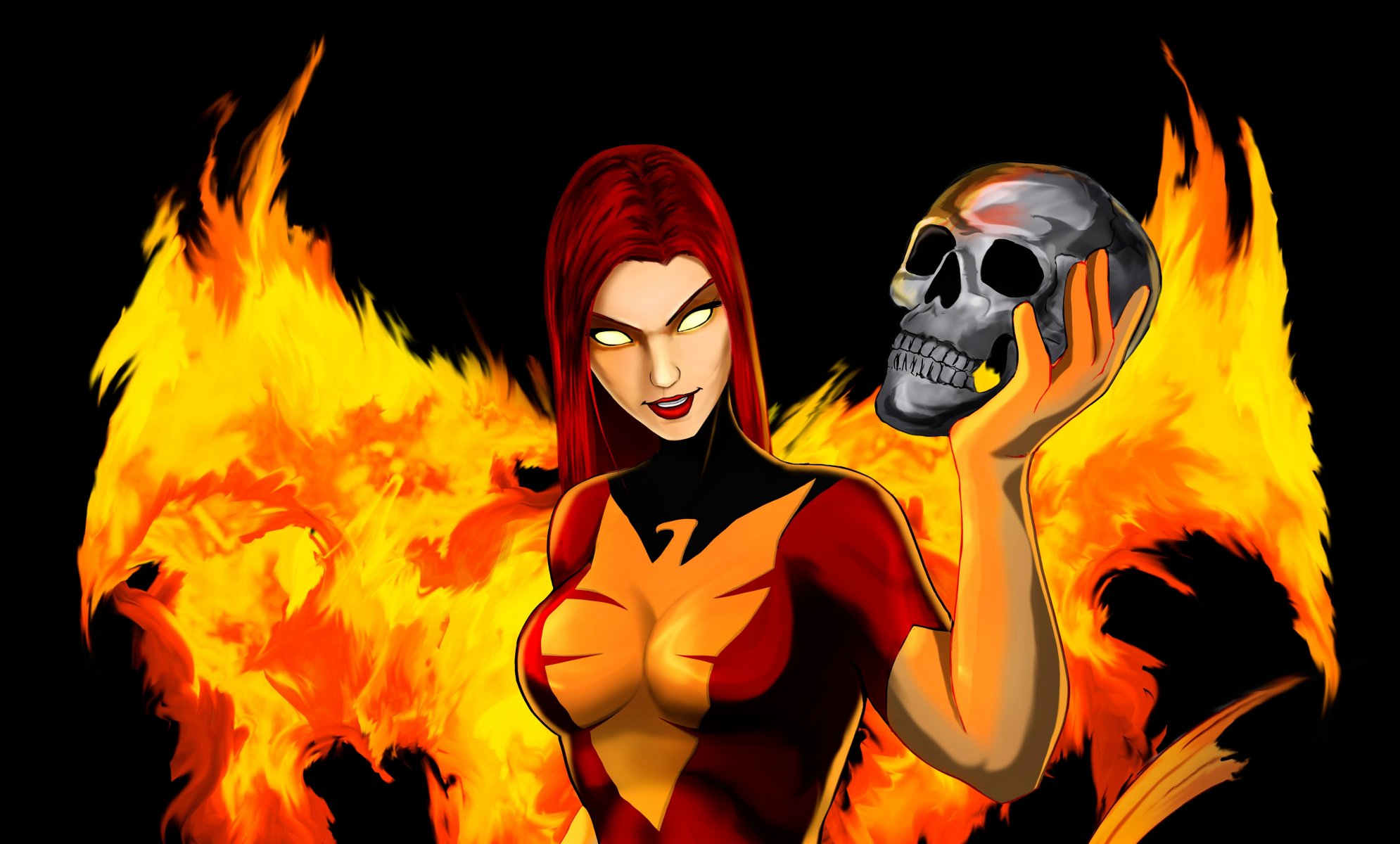 Dark phoenix with a skull in his hand