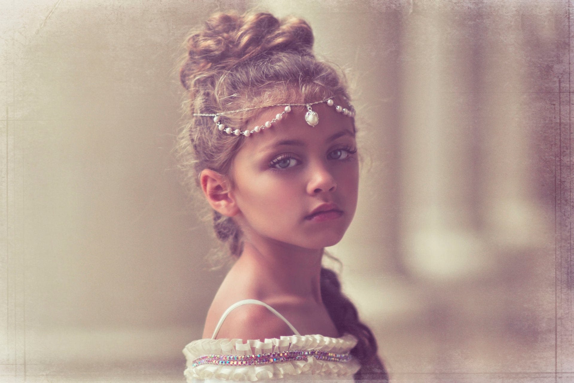 Portrait of a girl with a beautiful hairstyle and a decoration on her head