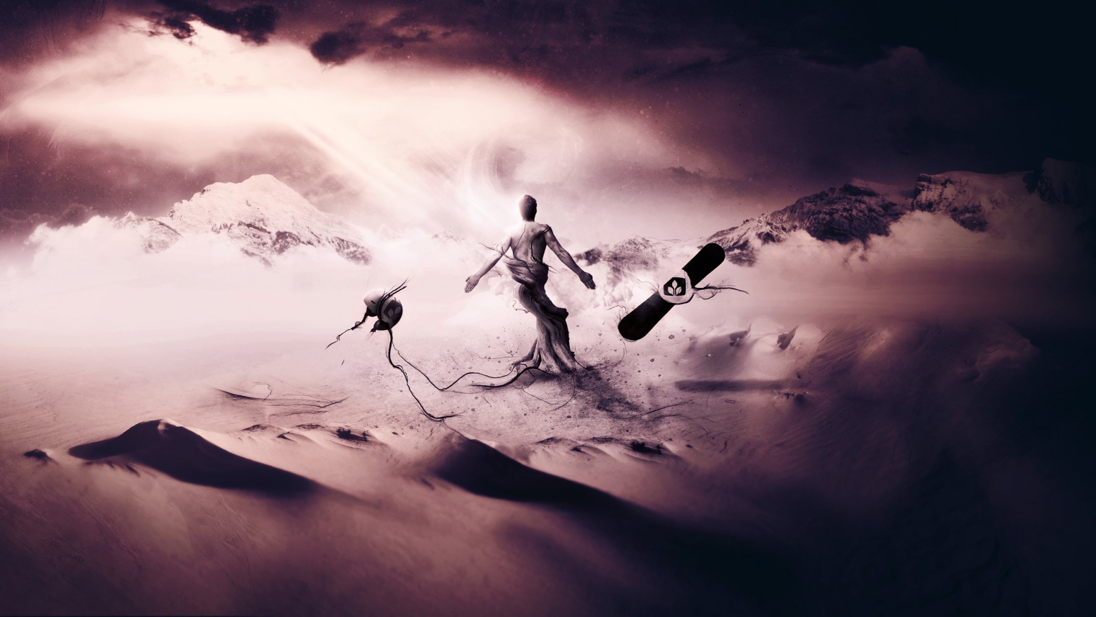 Image tags:desktop, wallpaper, art, creative, sands, dunes, the roots, man, helmet, snowboarding, fantasy
