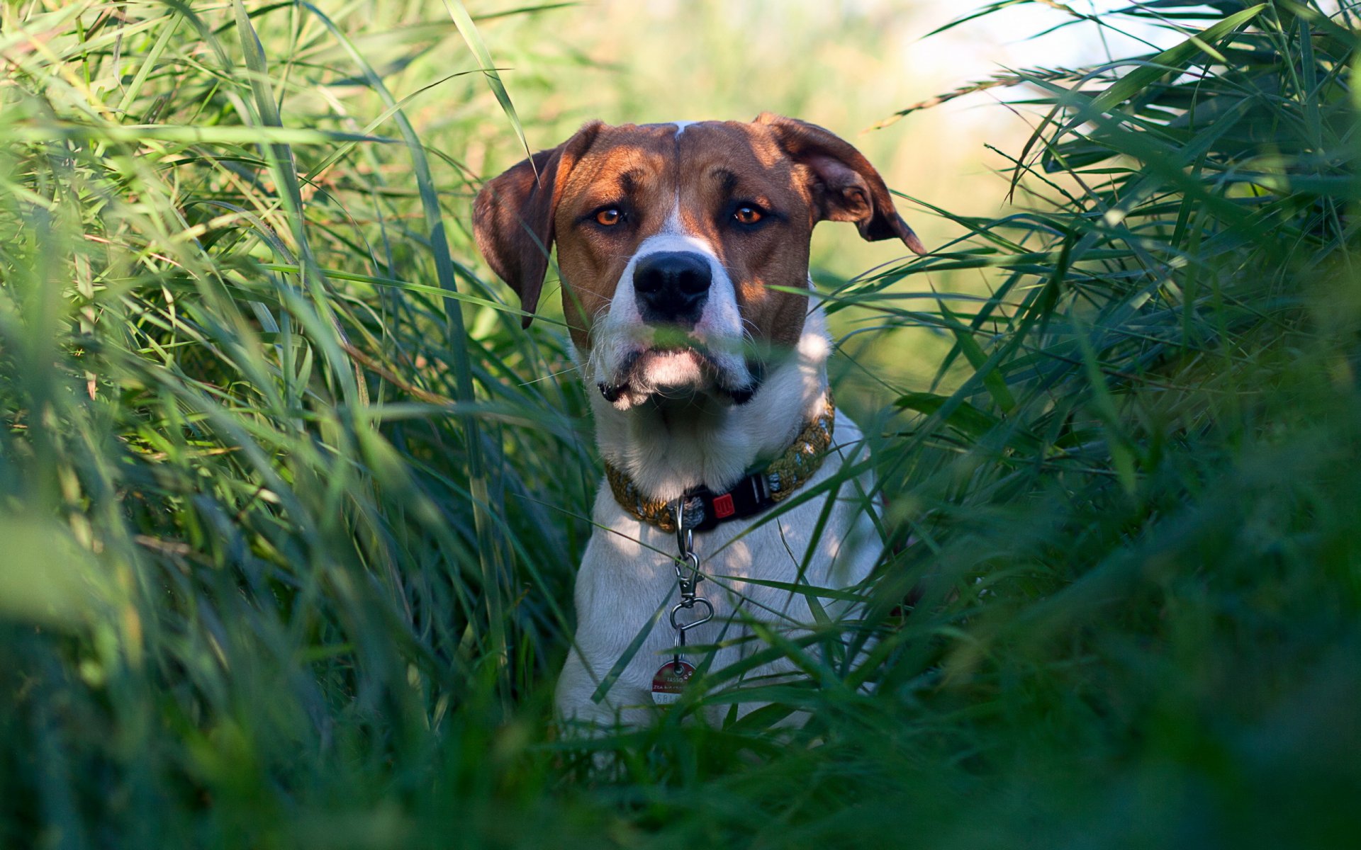 Hunting dog in the tall grass