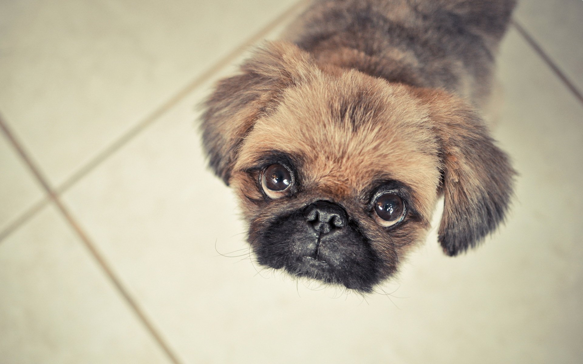 A little Pekingese with big eyes is looking at you