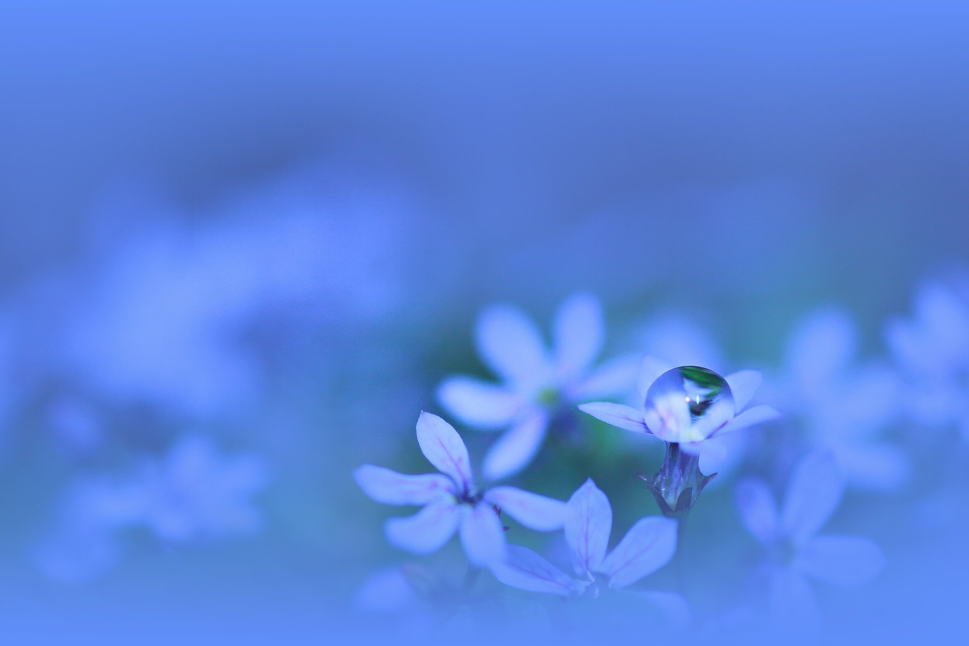 Dreamy blue flowers with a drop of dew