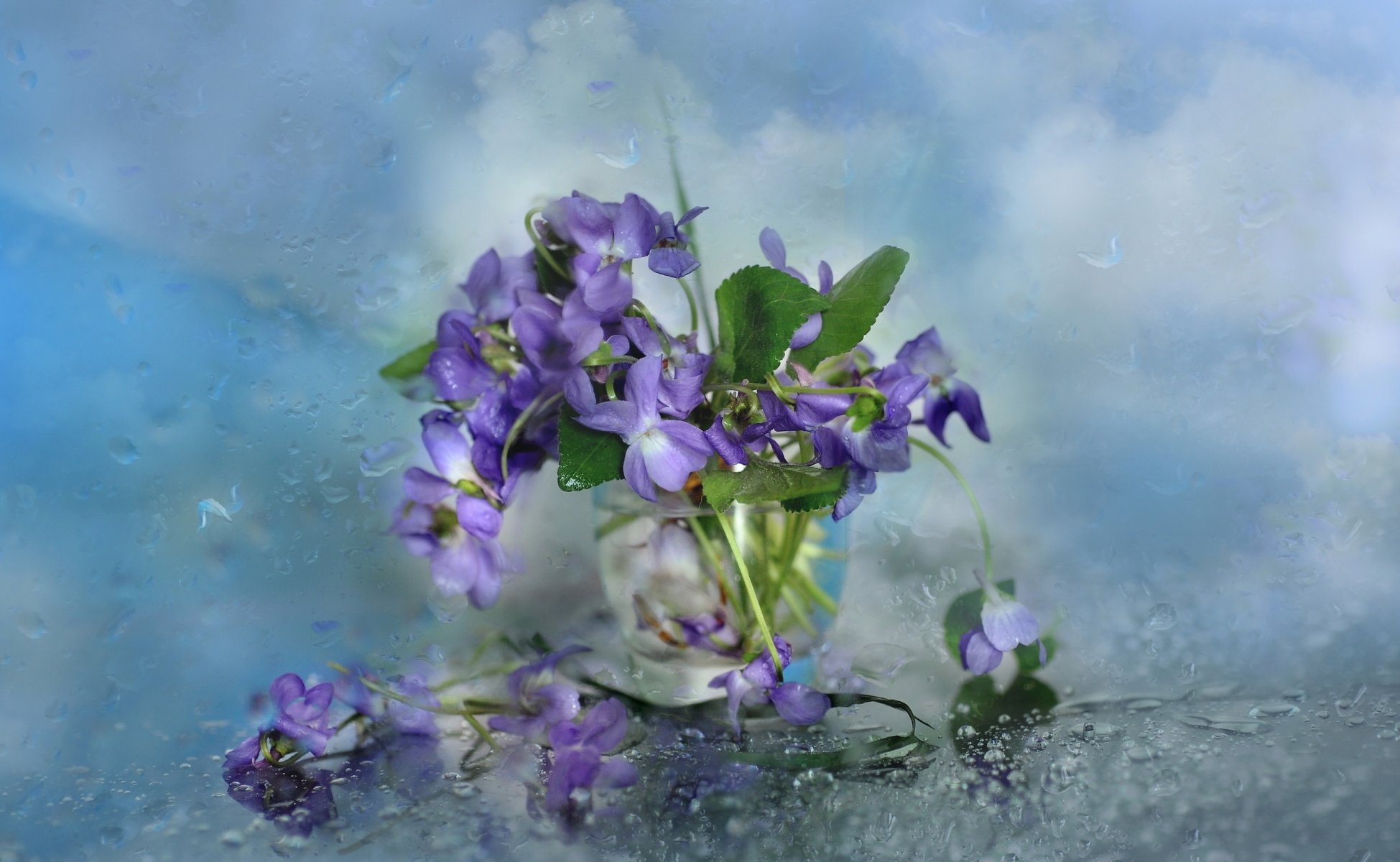 Plucked flowers in a glass of water