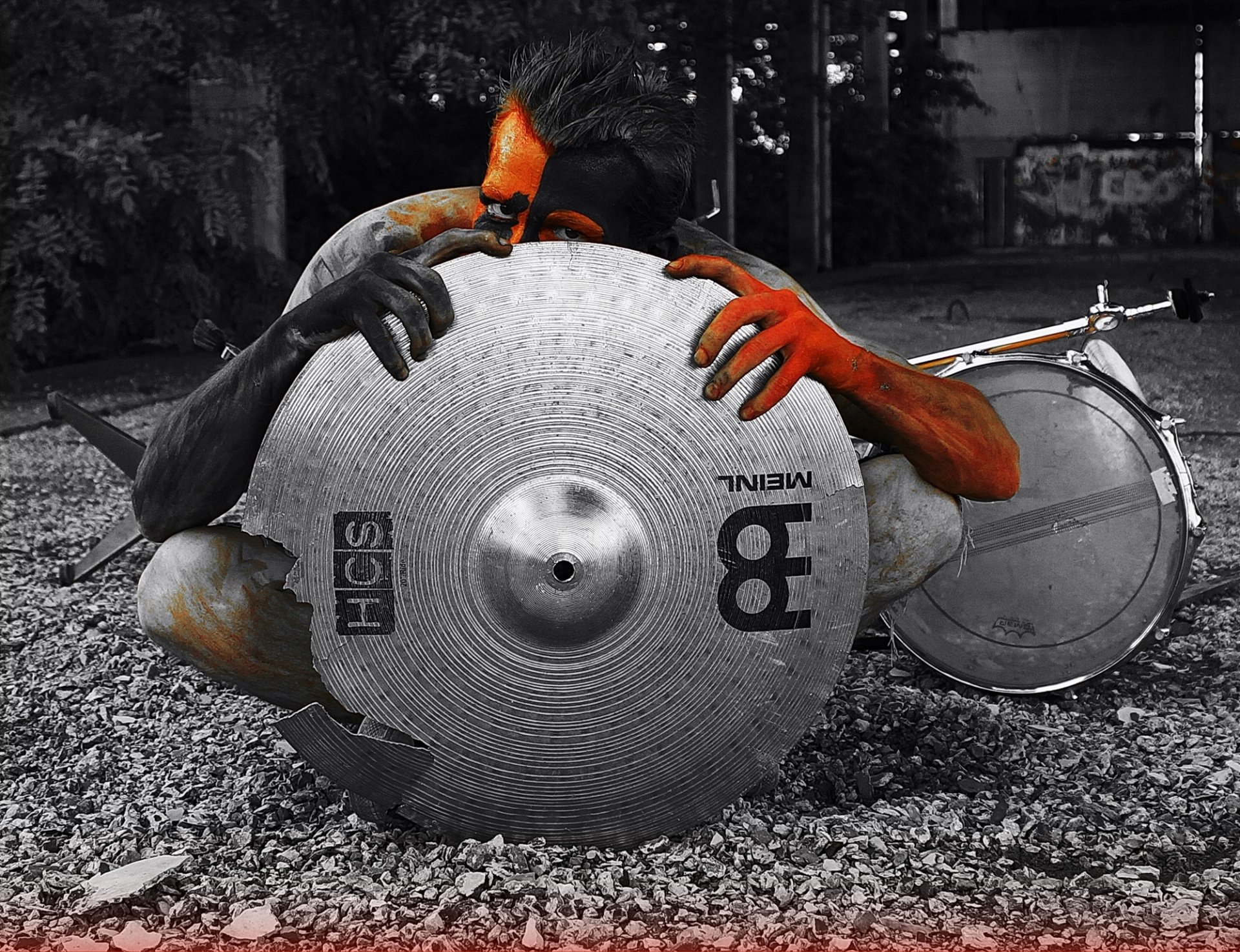 Drummer in a grimm with red and black hands