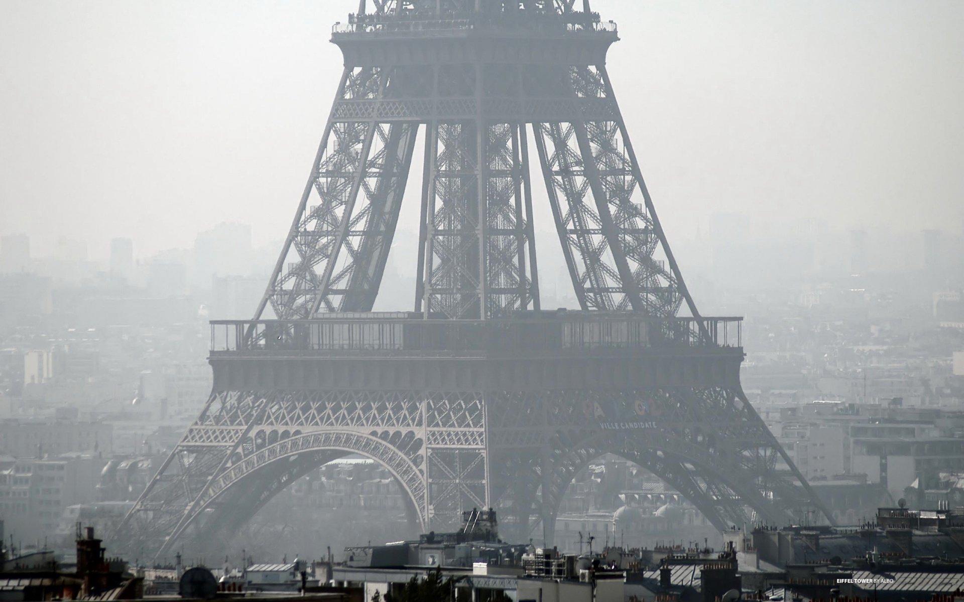 Smog enveloped the Eiffel Tower