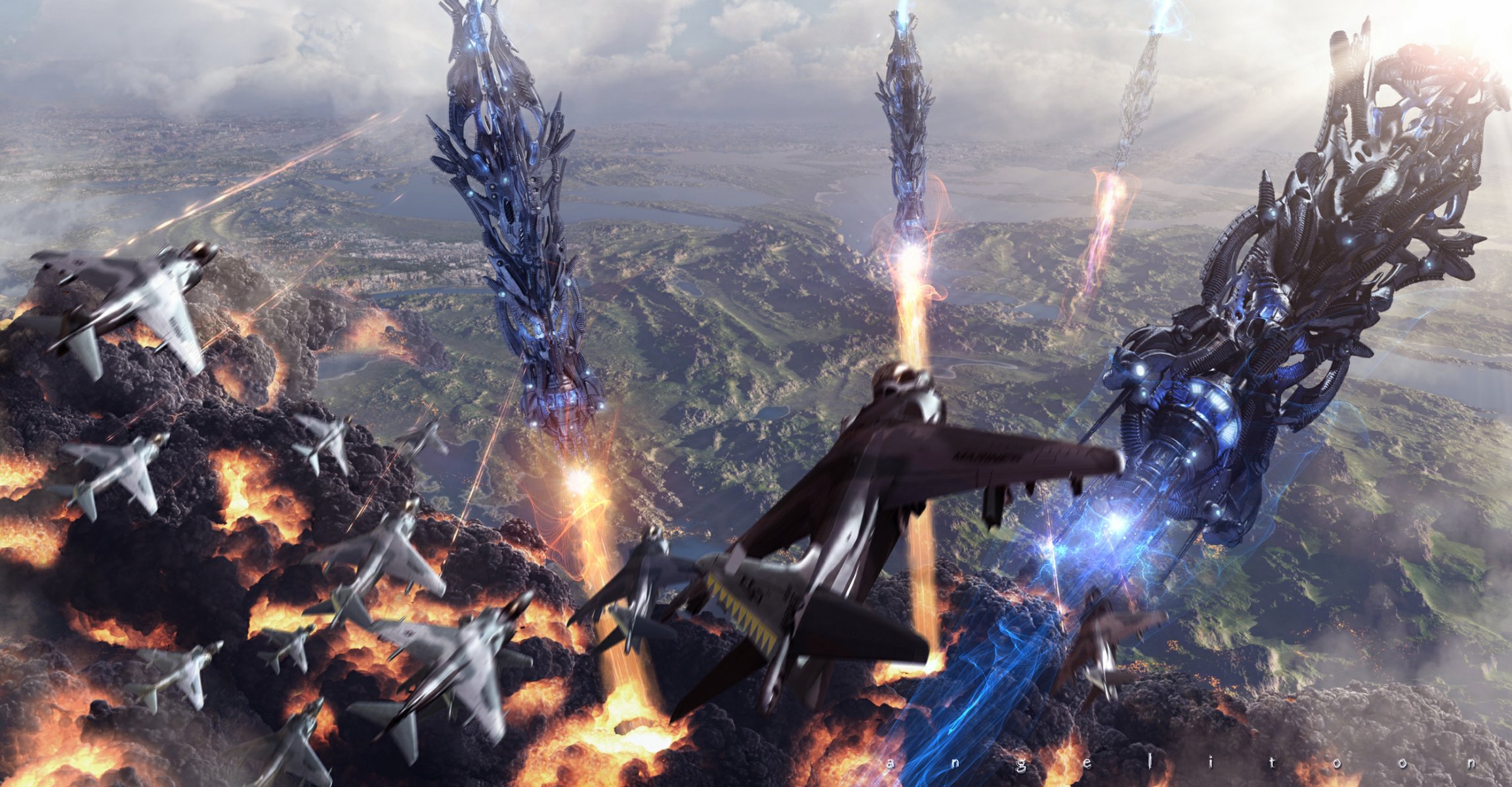 The battle of aviation ships during the invasion of Earth