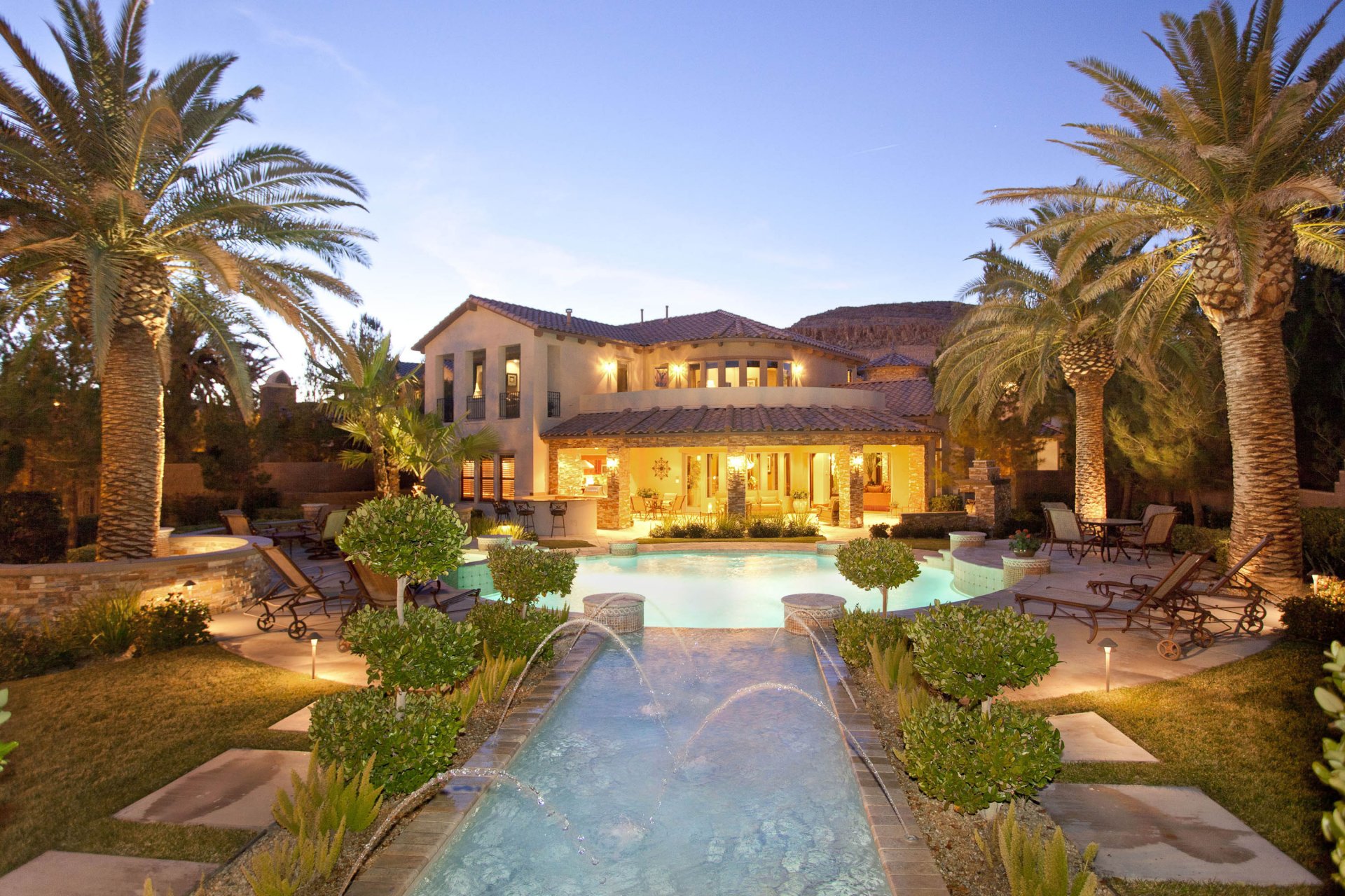 Image tags:exterior, vila, house, home san alivia, pool, house villa, fountain, terrace, style, sofas, armchairs, table, palm, beds .