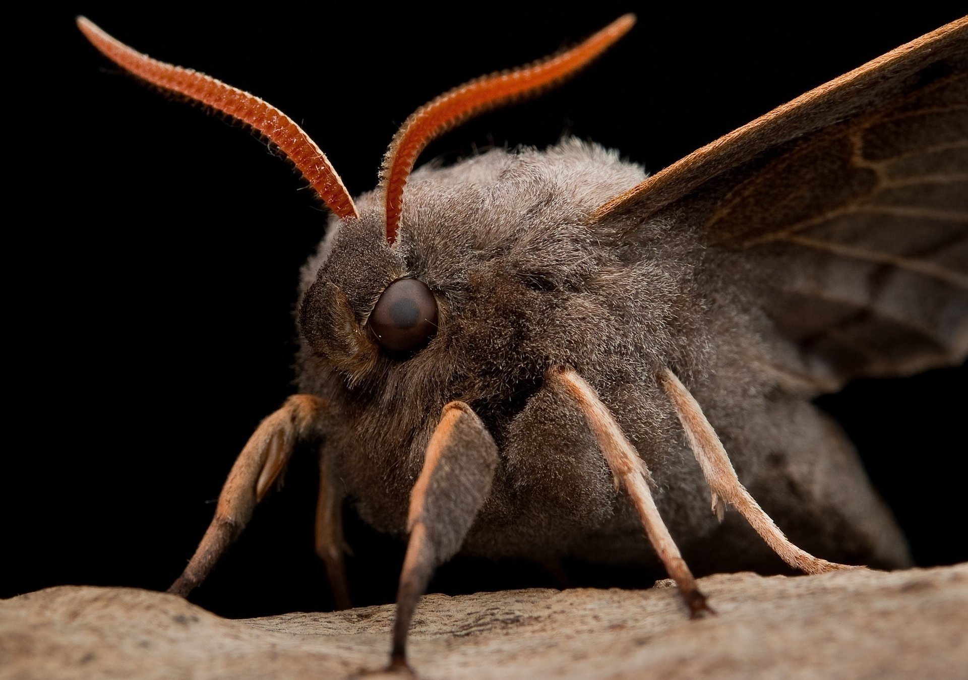 Eyes, antennae, legs of a moth in detail