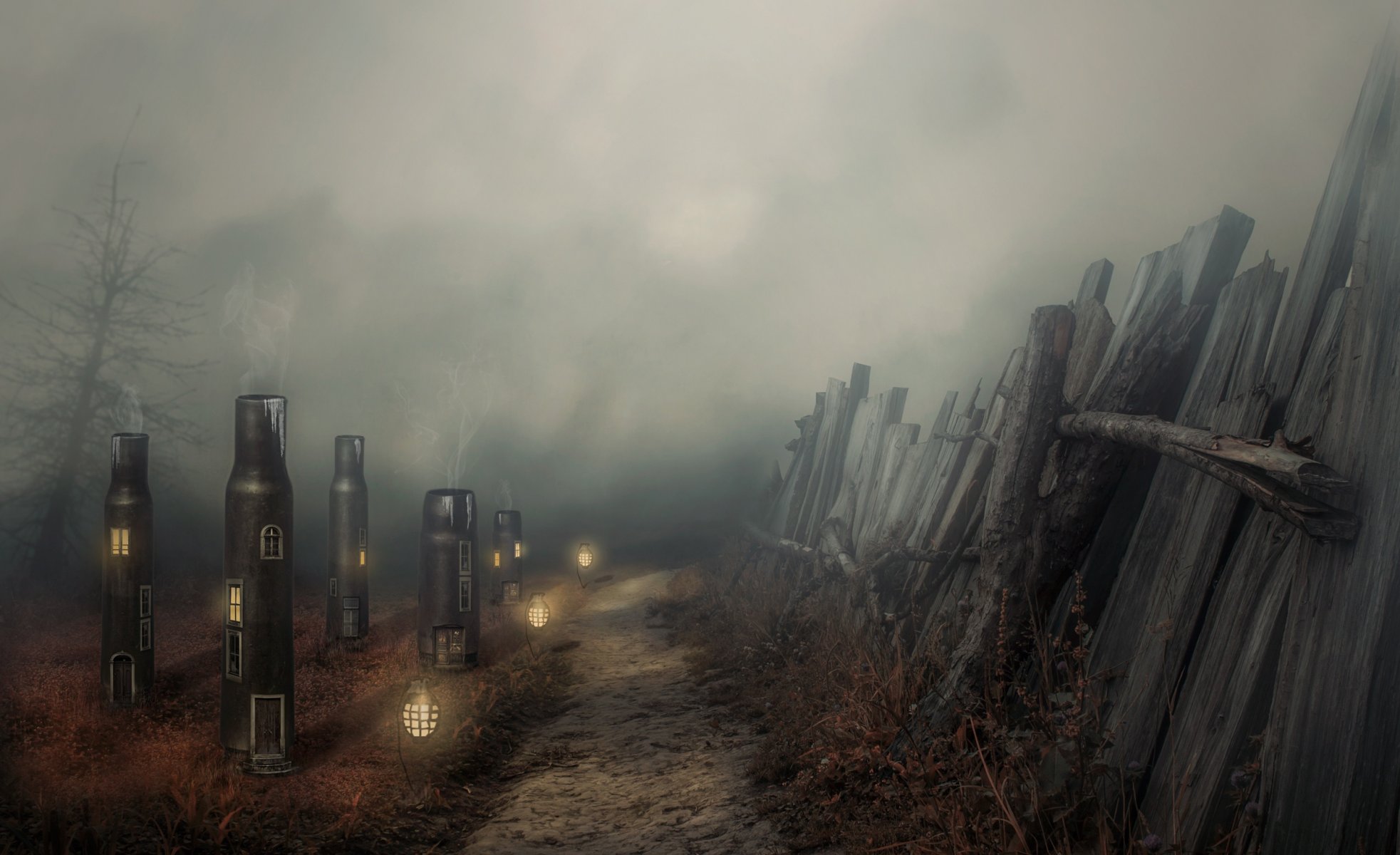 Shell casings in an abandoned city on a trail behind a fence