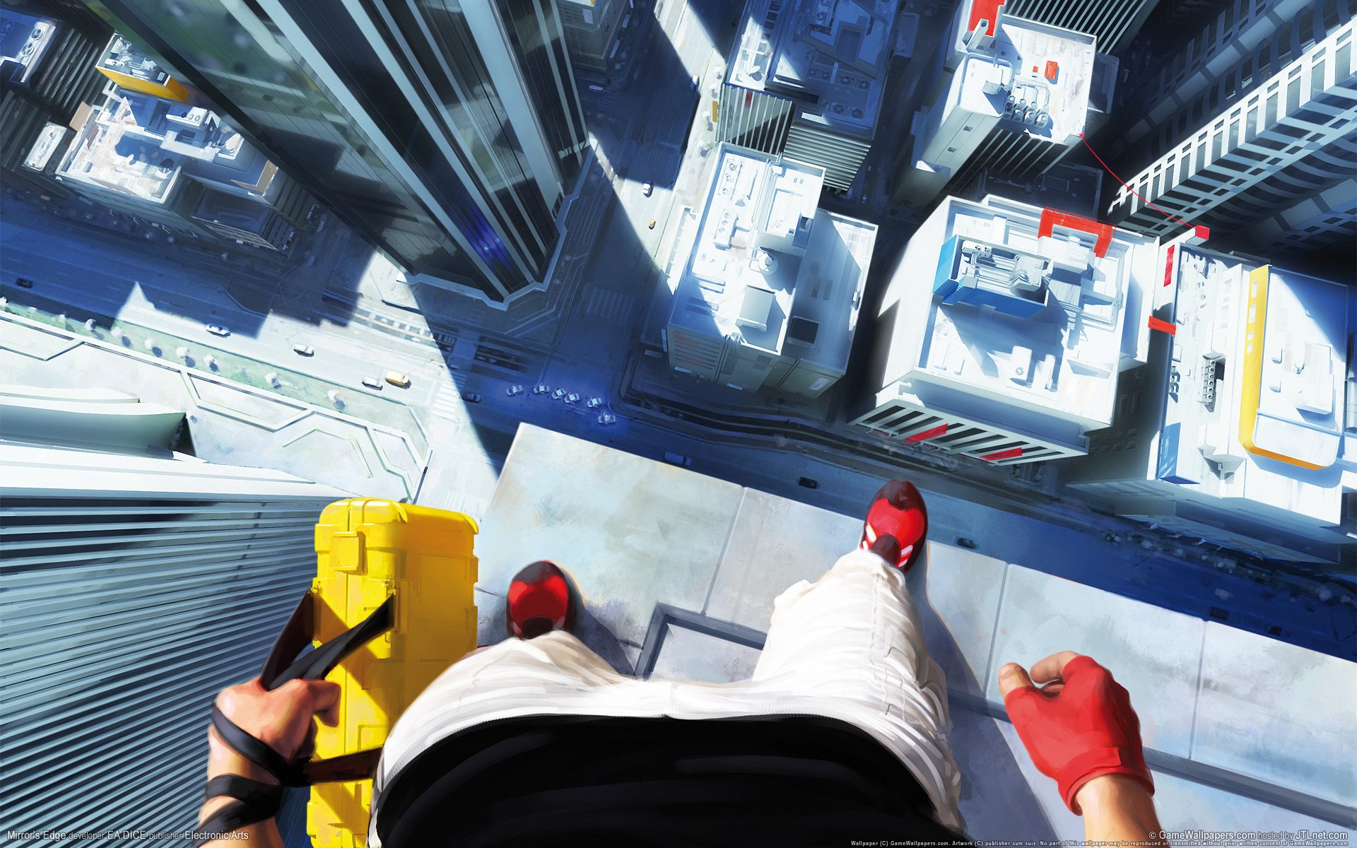 The feet on the edge of the building are very high