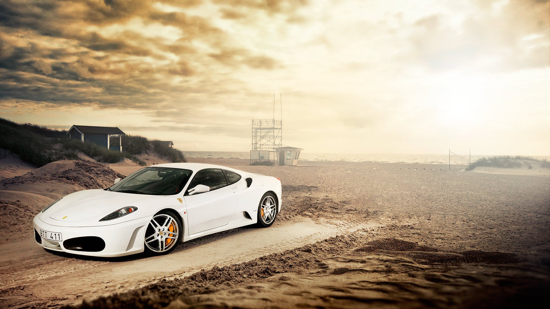 White Ferrari F - 430 on the beach