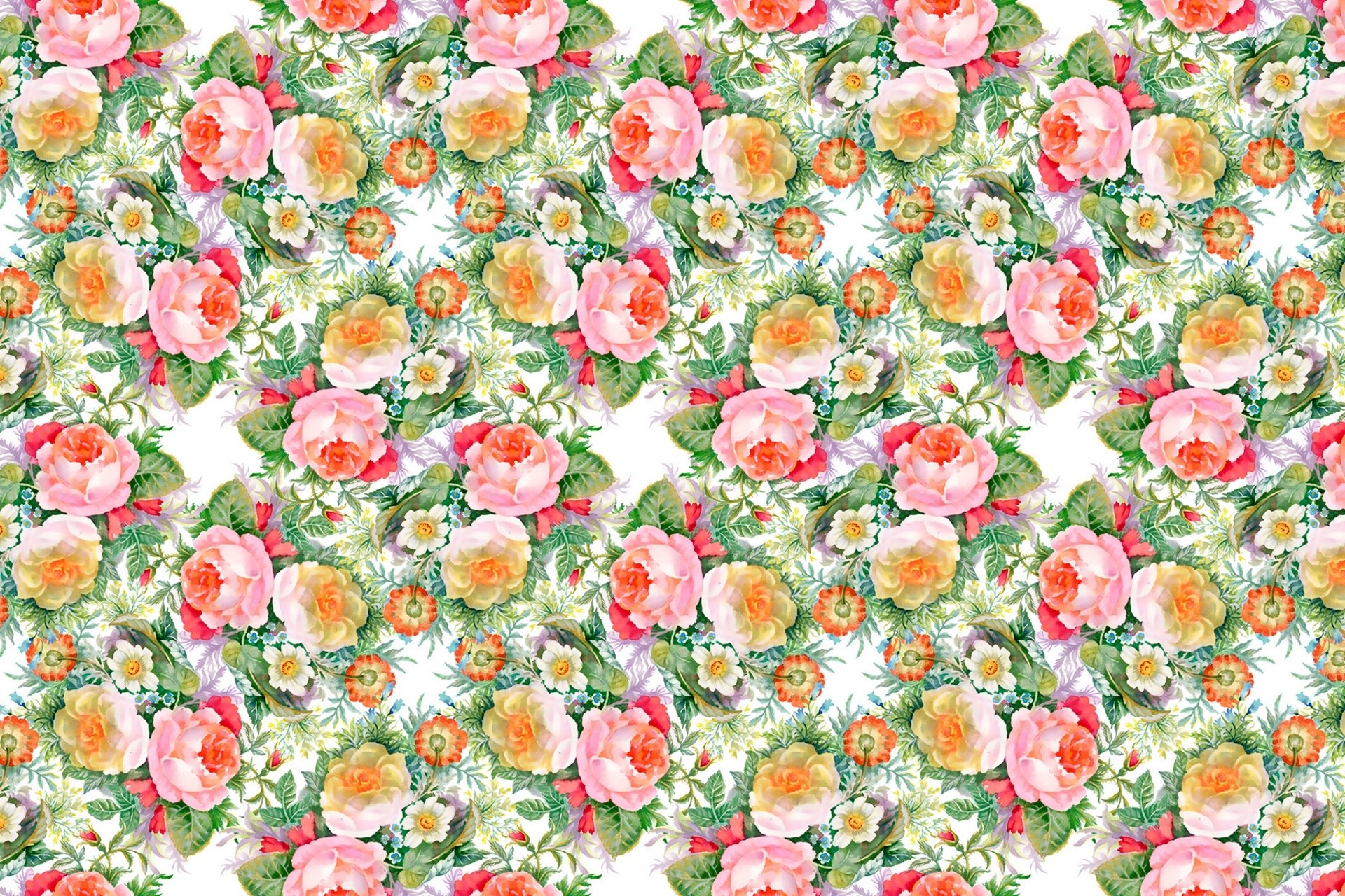 Wallpaper with rose flowers and patterns