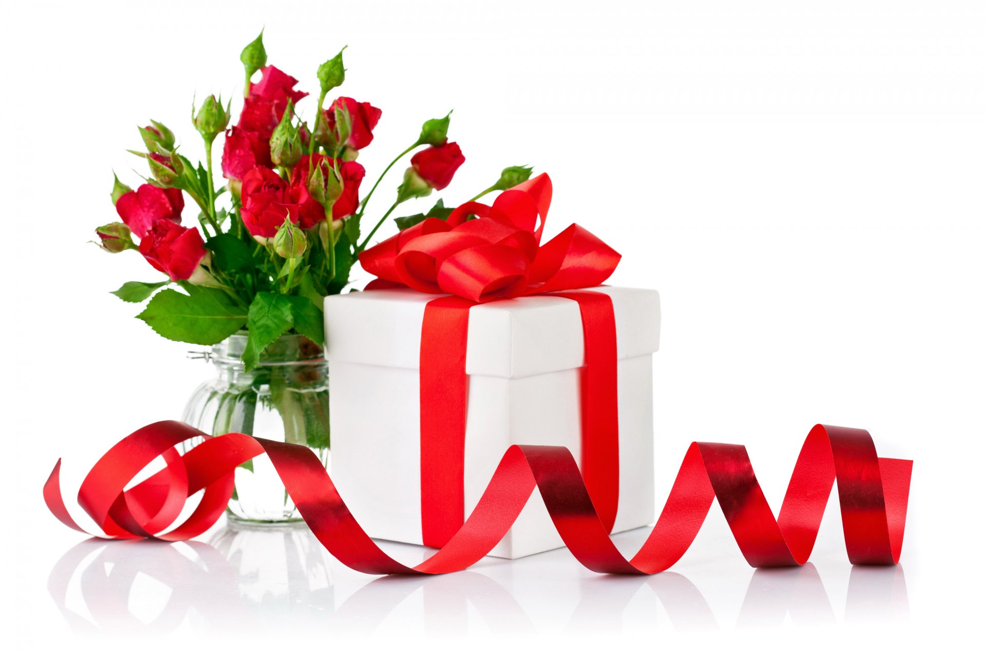 A gift with a red bow and roses