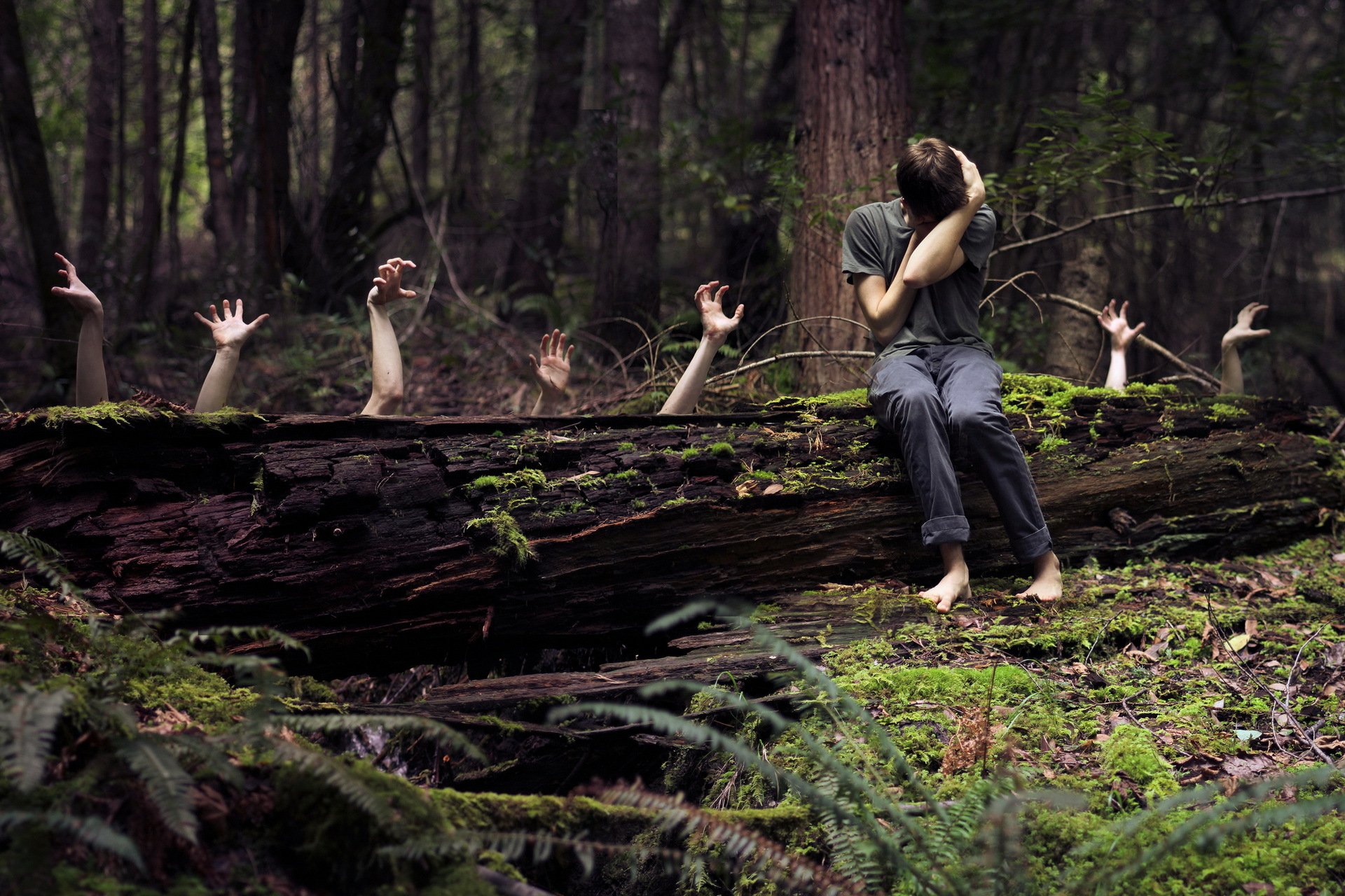 A lonely guy in the woods alone with his fear