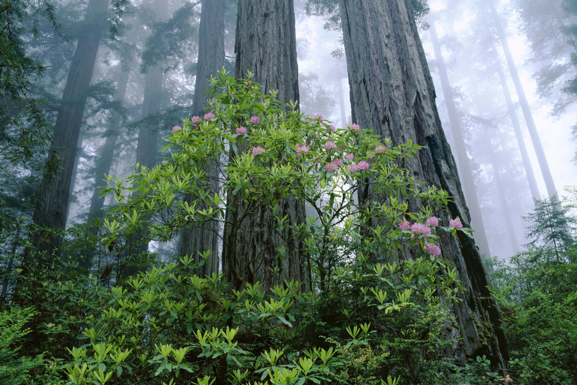 The trees stand in the shade, spreading out until the rays of the sun illuminate