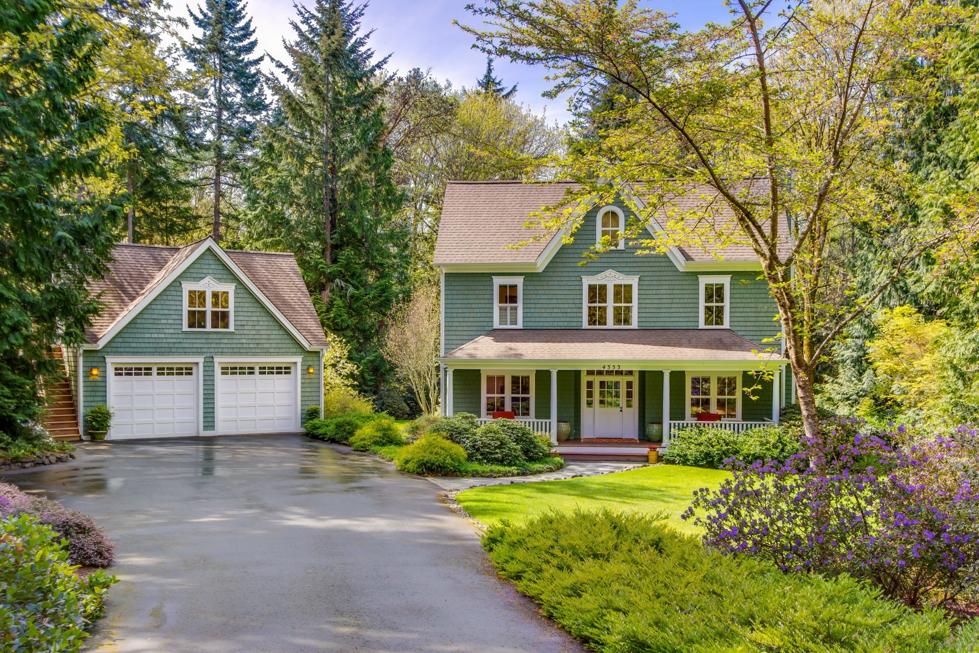 A beautiful mansion in the middle of a summer forest