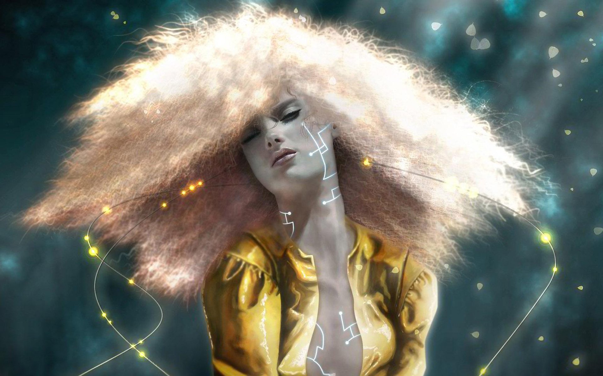 Blonde with lush hair on a dark background