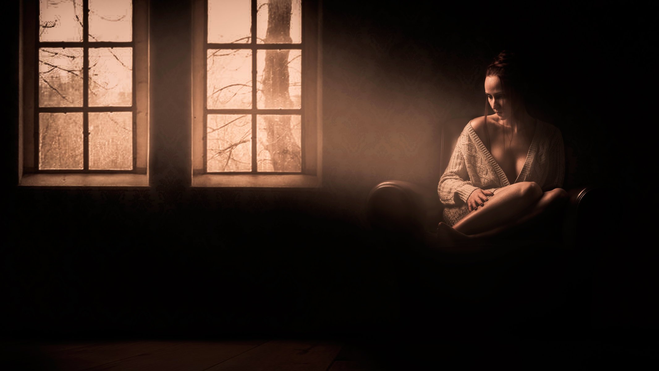 Sad girl in a lonely room