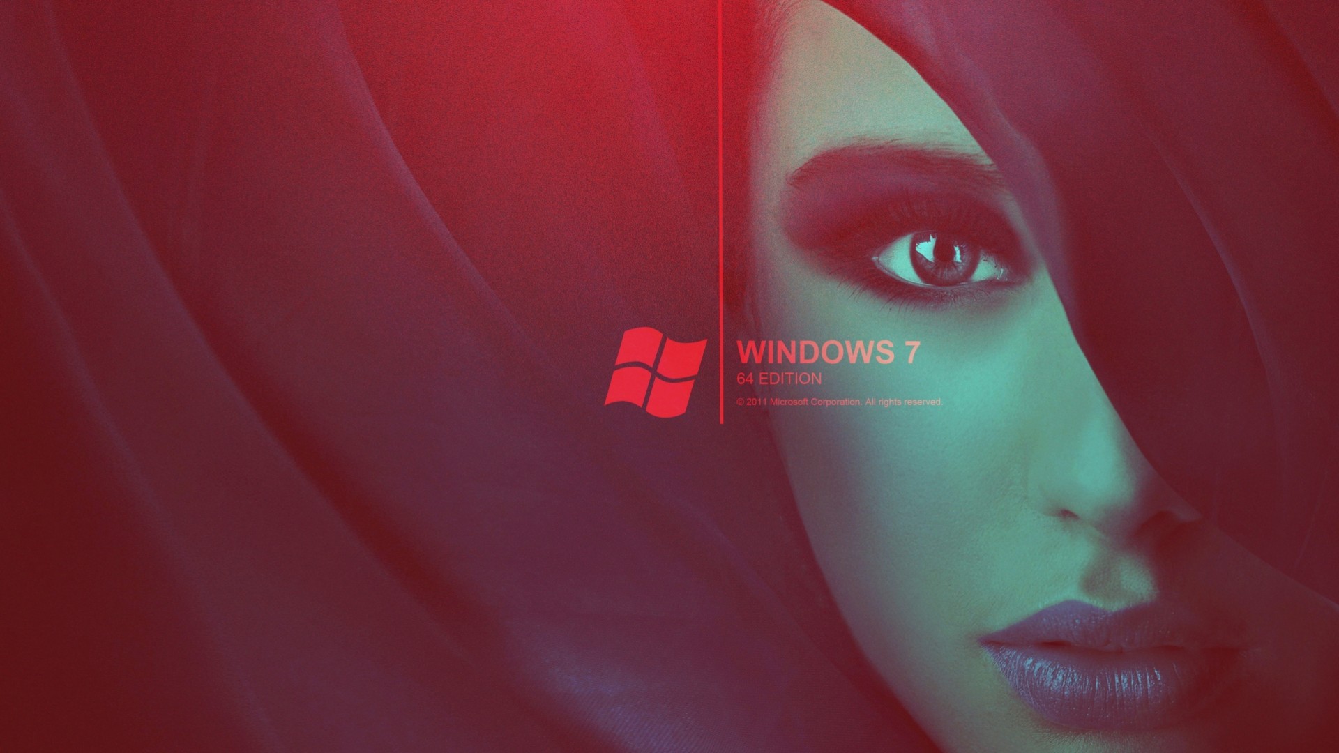 A picture with a girl's face with a windows 7 screensaver