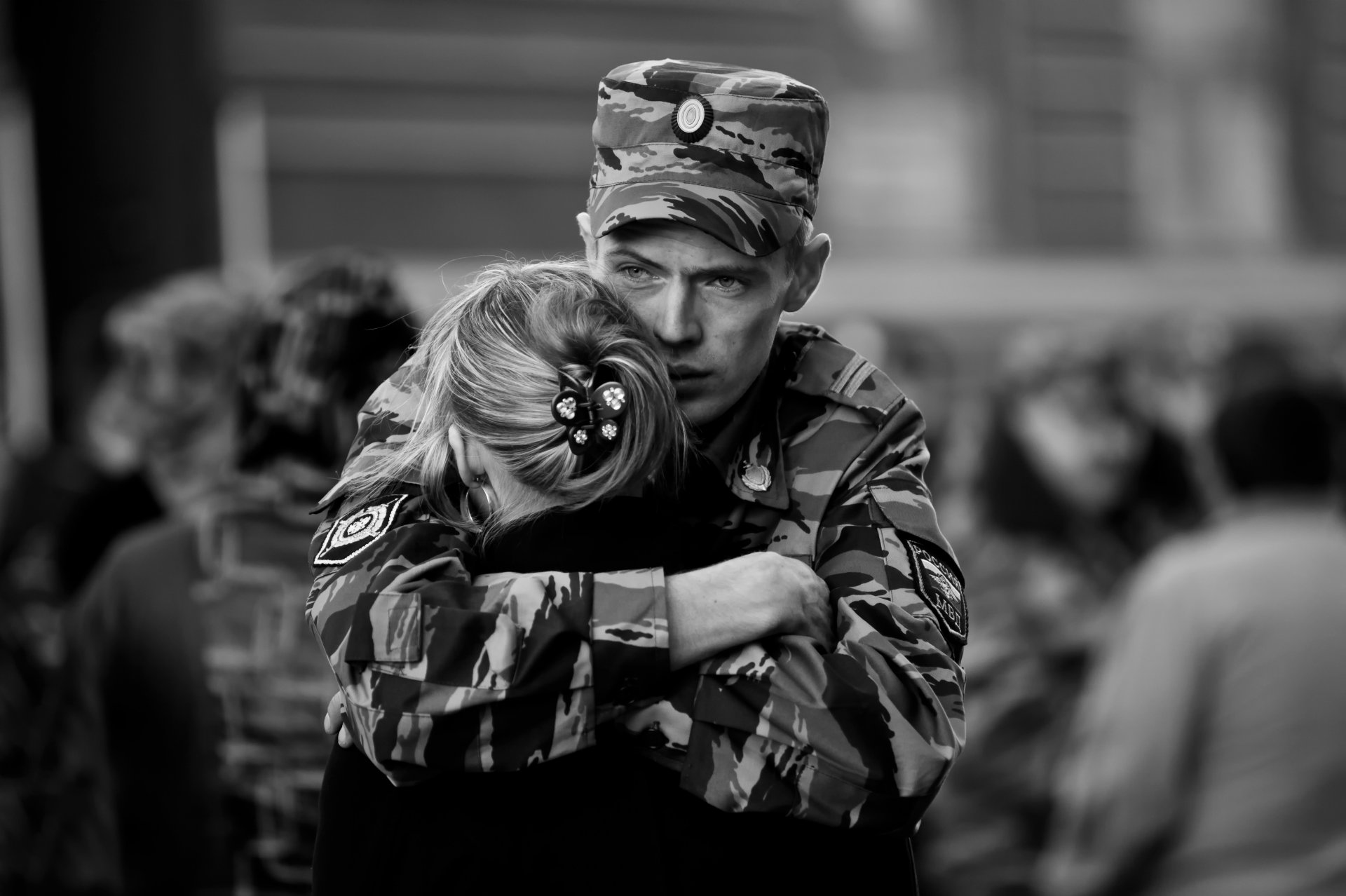 The farewell of a guy with a girl. Russia Ministry of Internal Affairs