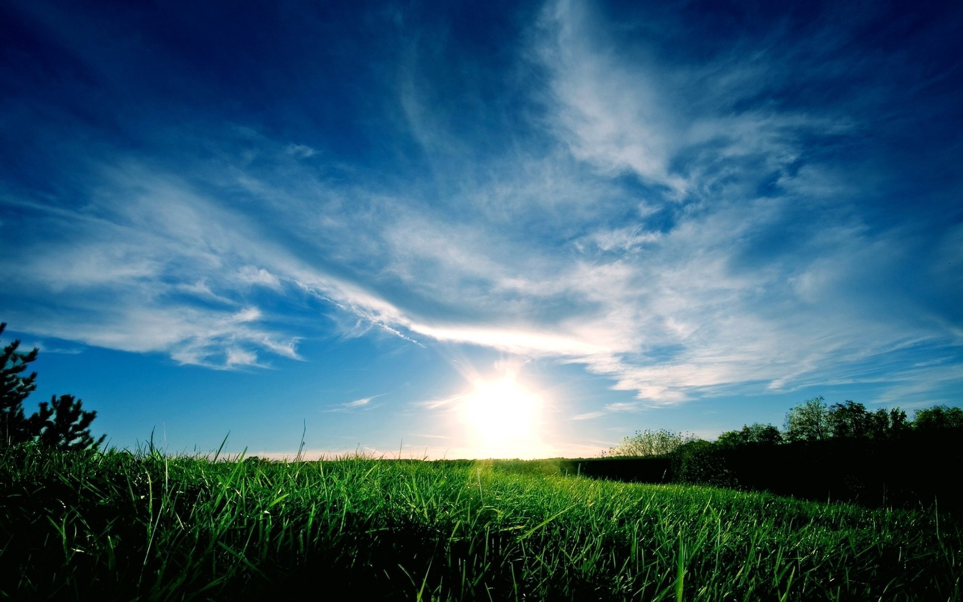 Green field and blue sky in summer