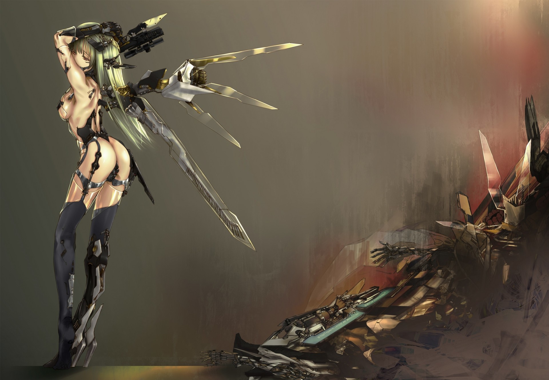 Sexy warrior girl with a sword on a gray sky background2110 x 1080, 306 kB