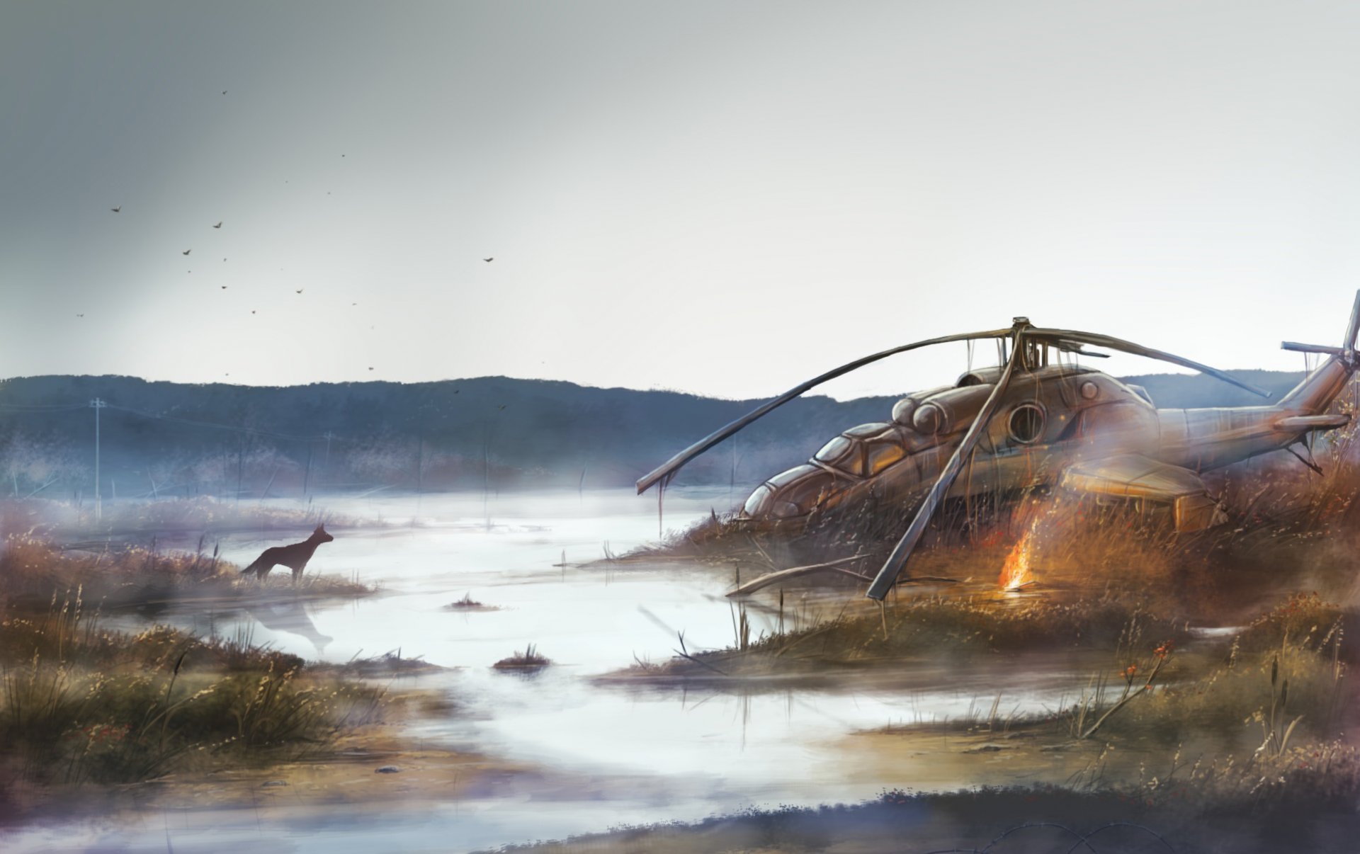 A dog found a helicopter in a swamp