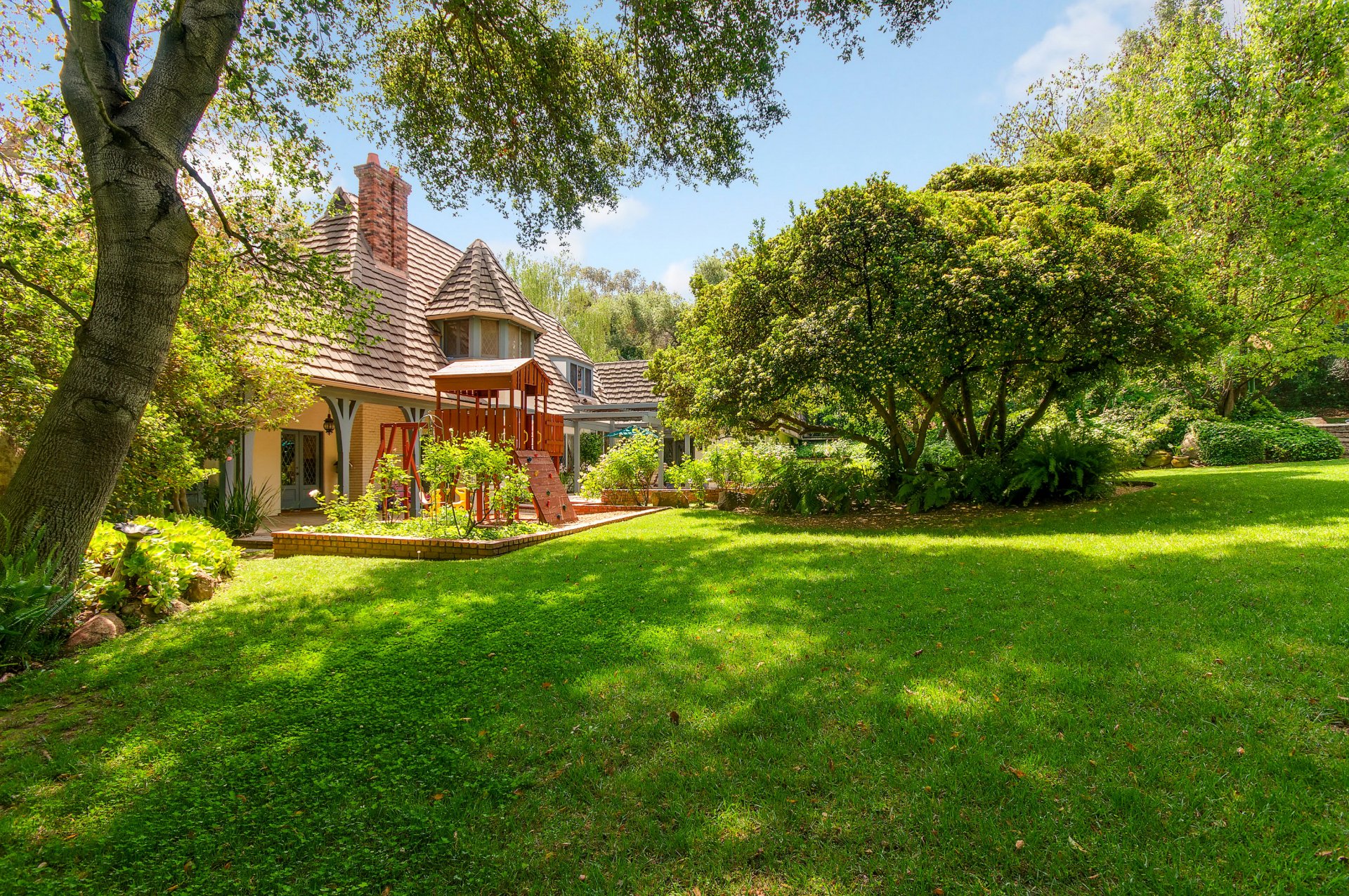Mansion with playground and lawn