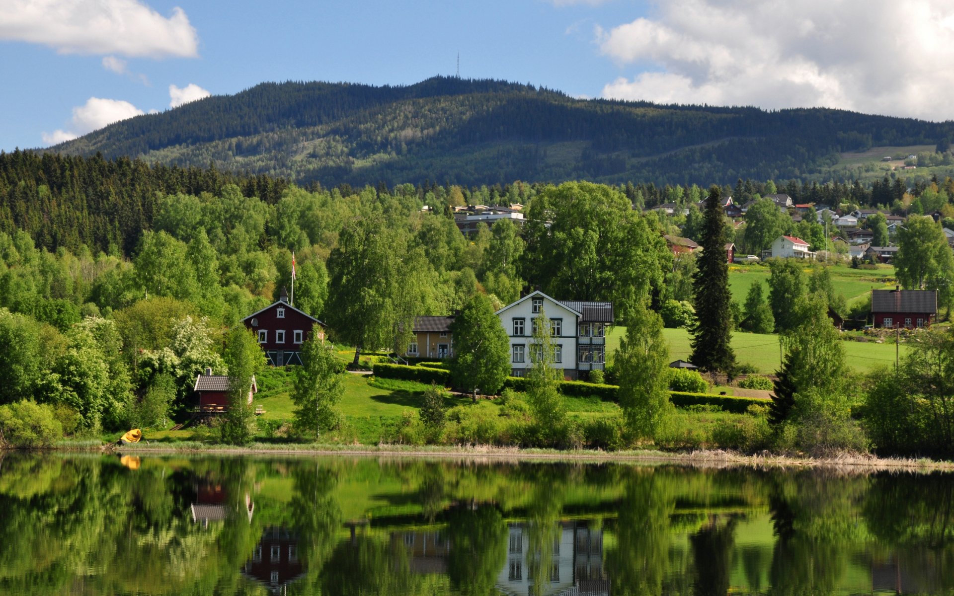 lake water of the field grass green hills mountain summer tree sky clouds nature landscape1920 x 1200, 480 kB