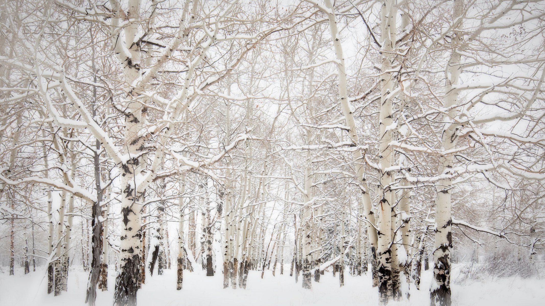 Winter forest. Aspens in the snow