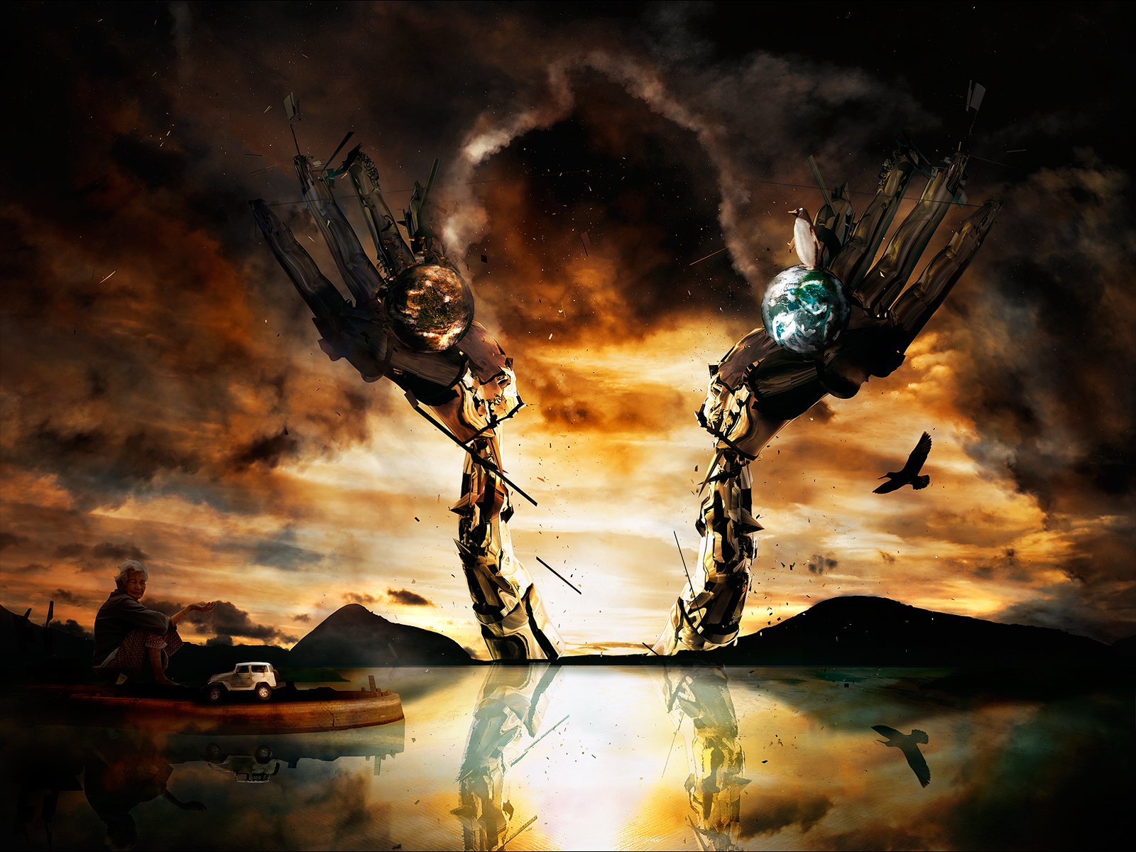 elements fire. water air land reflection glasses1920 x 1080, 109 kB