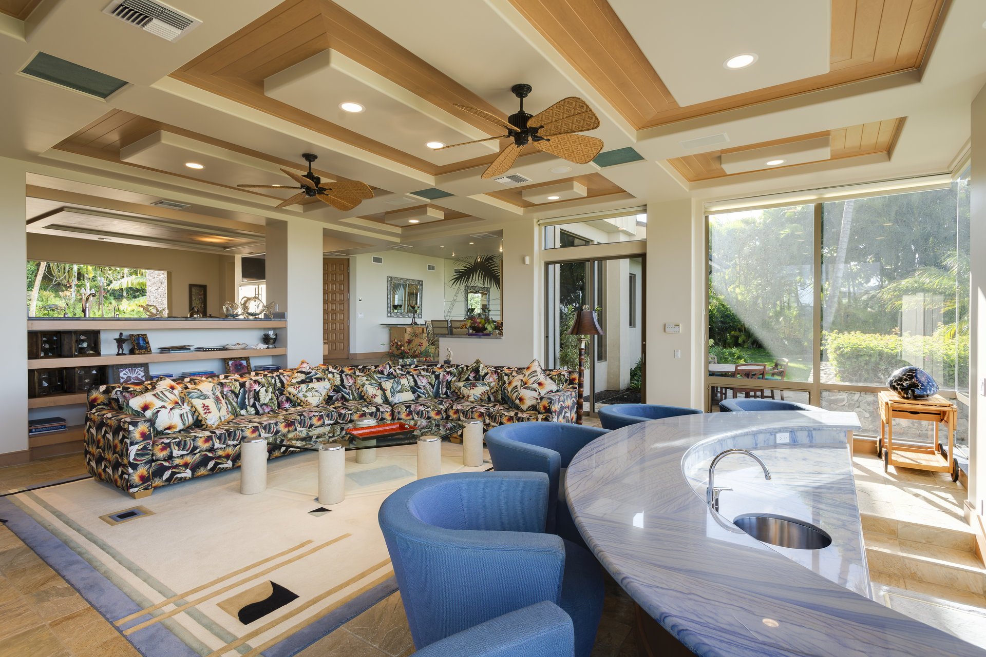 Interior of a room with a bar counter