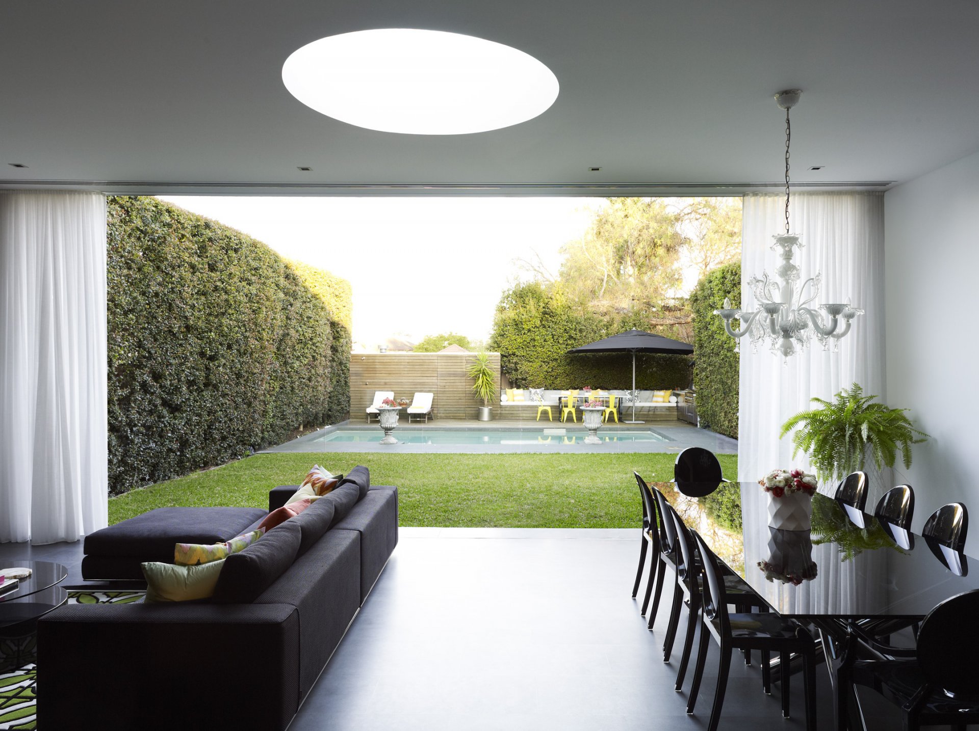 Image tags:interior, desigen, pool interior, design, room, sofa, table, armchairs, chandelier, yard, pool, lawn.