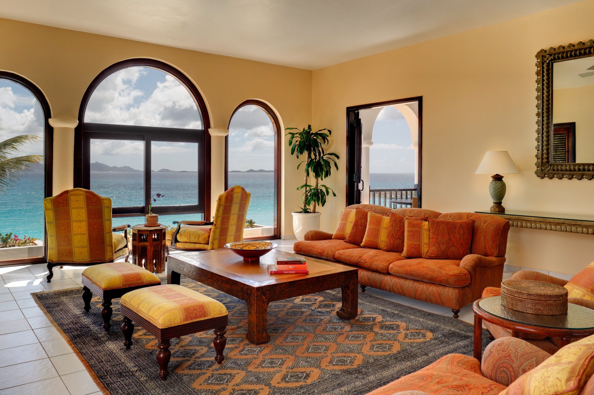 Luxuriously furnished living room in a country mansion by the sea
