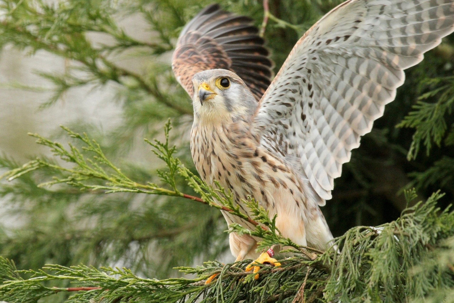 A proud falcon is sitting on a tree