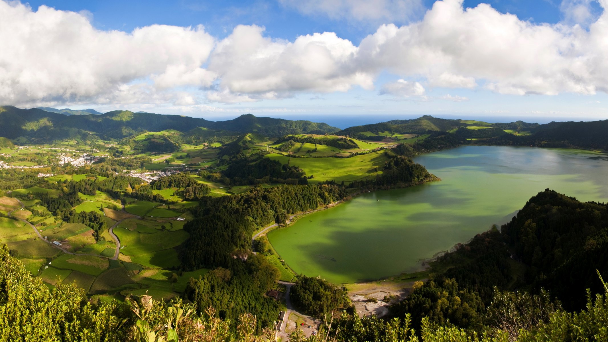 lake water of the field grass green hills mountain summer tree sky clouds nature landscape1920 x 1200, 480 kB
