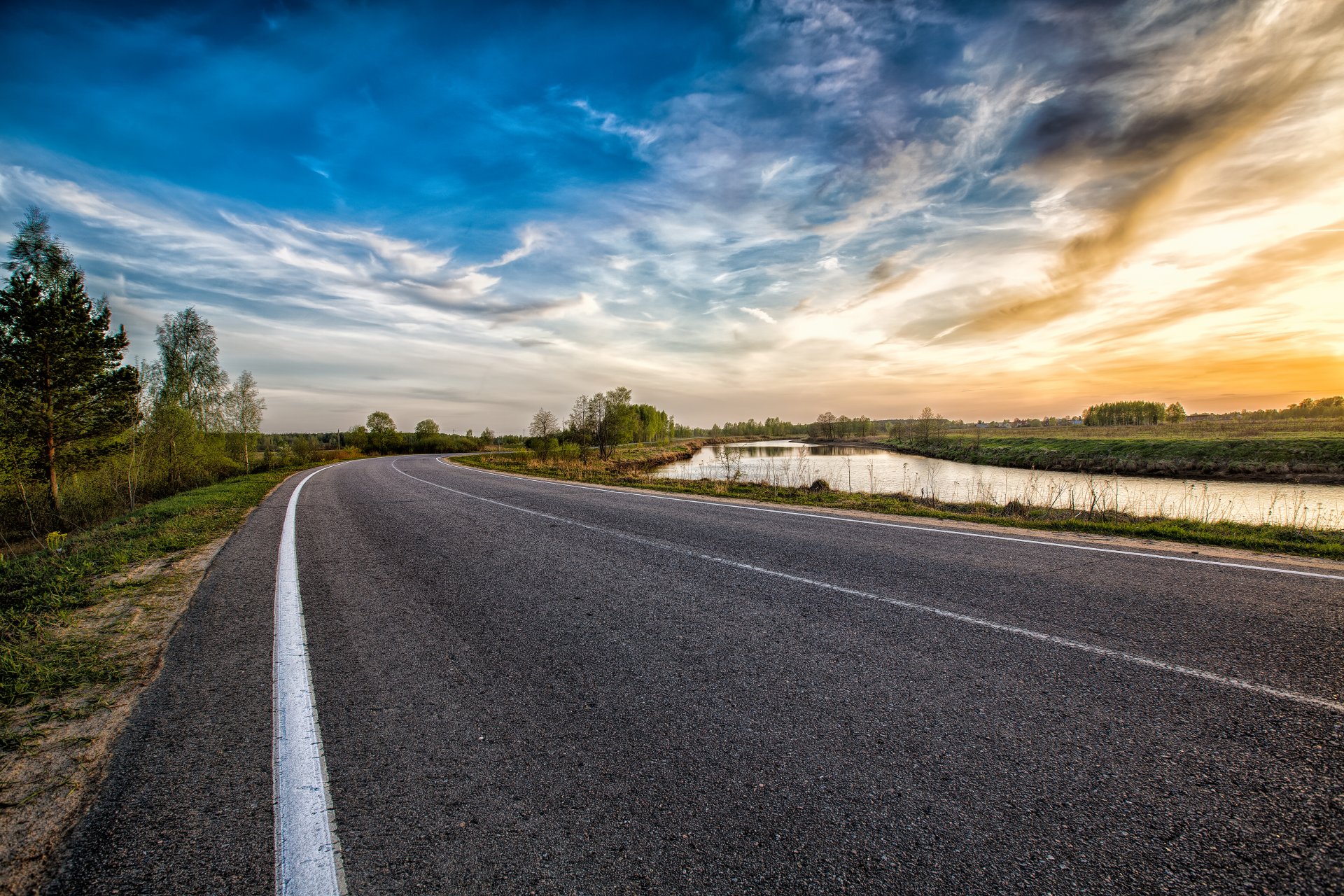There is a small lake along the road