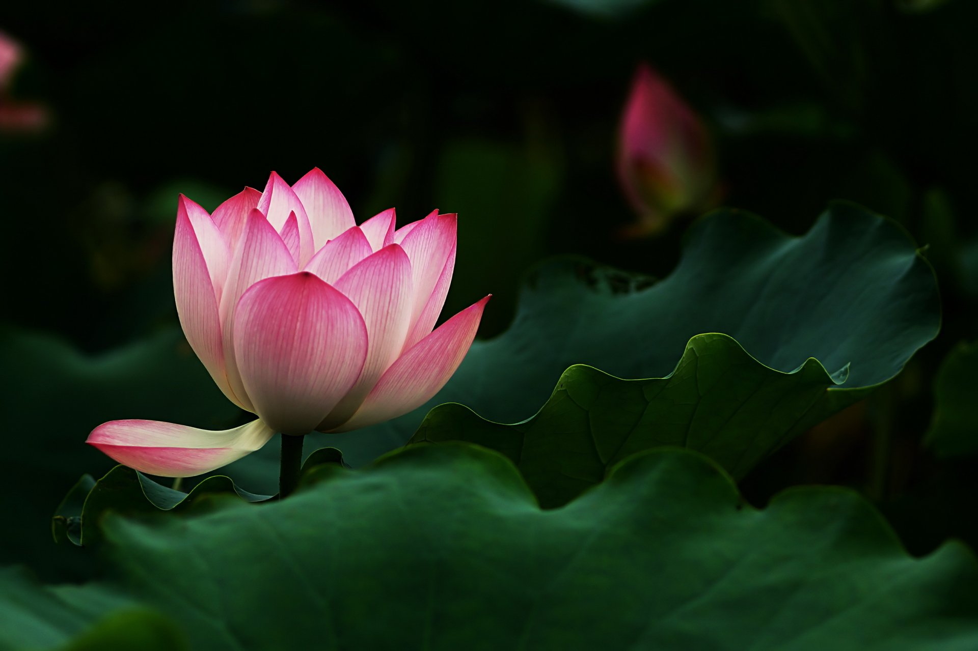 Pink lotus flower with leaves