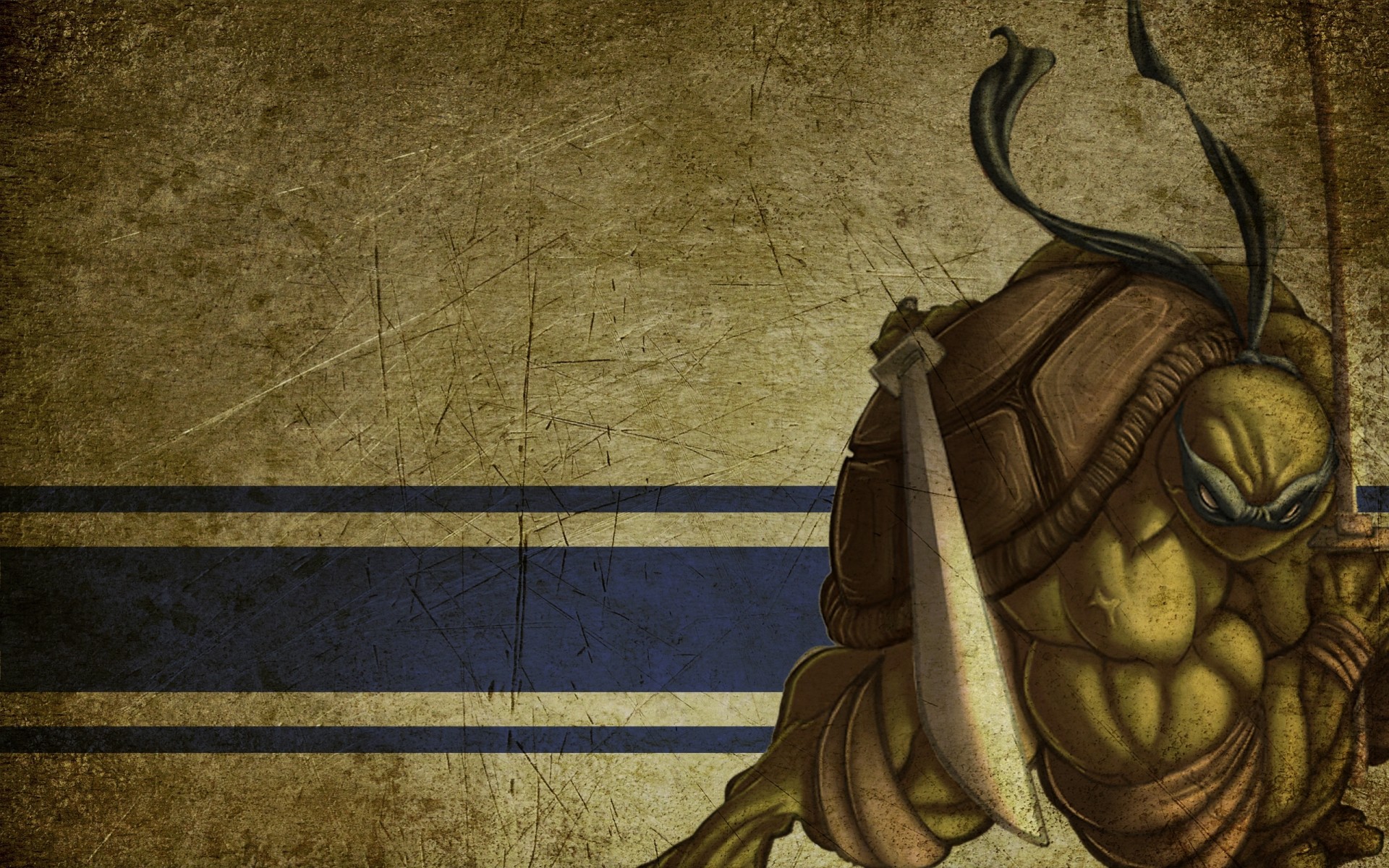 Leonardo teenage Mutant Ninja Turtles on a yellow=gray background