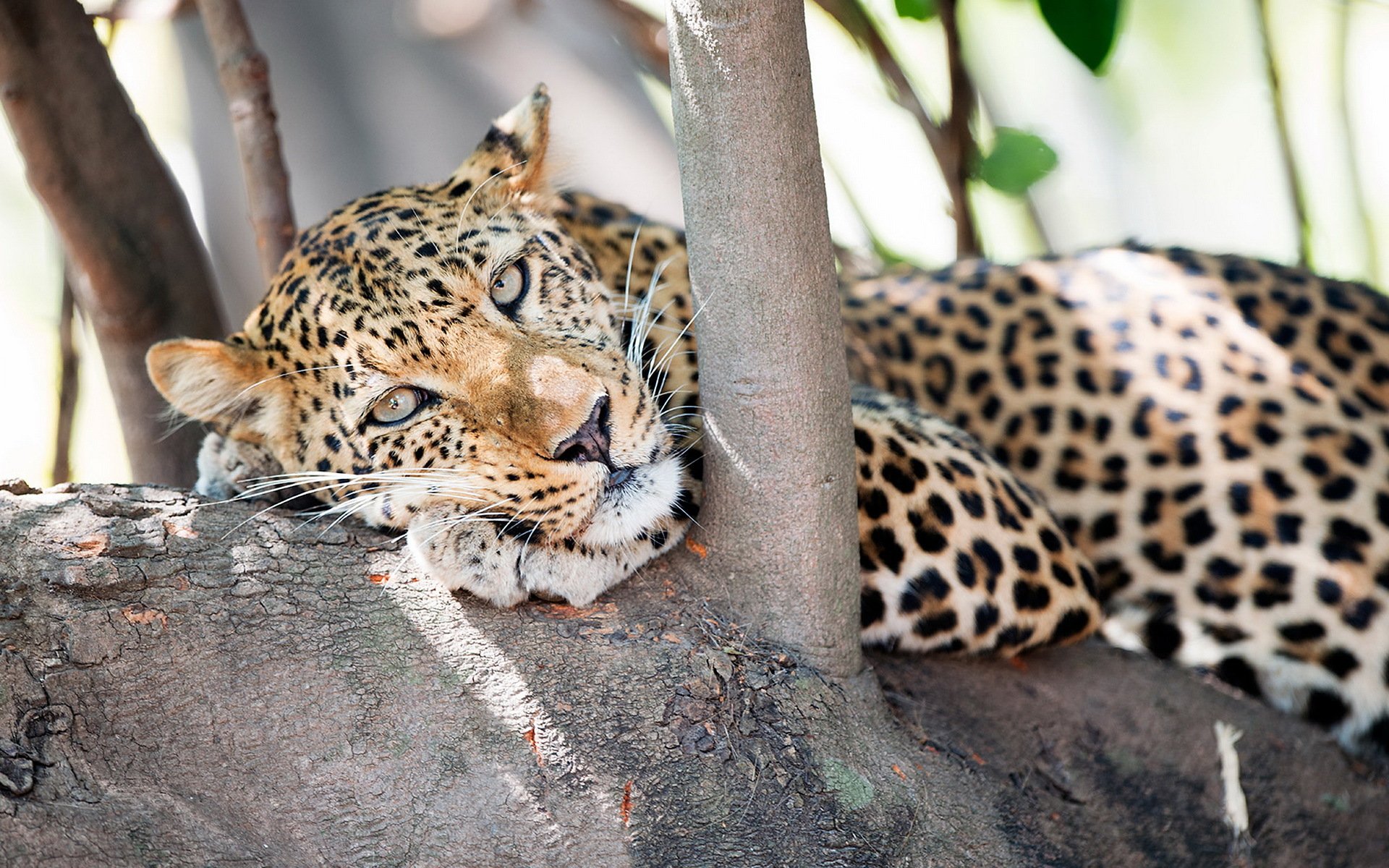 Predatory leopard on a tree